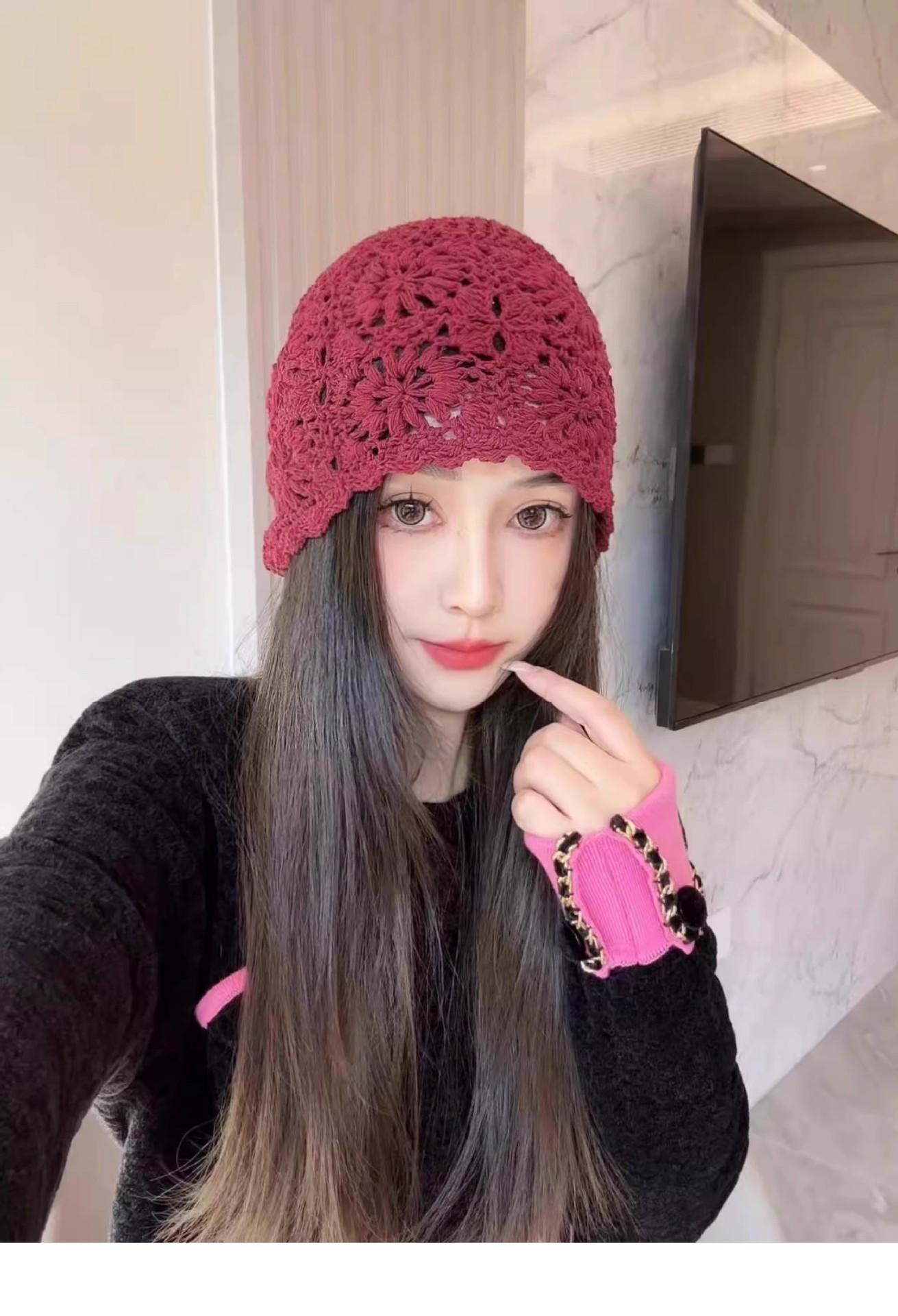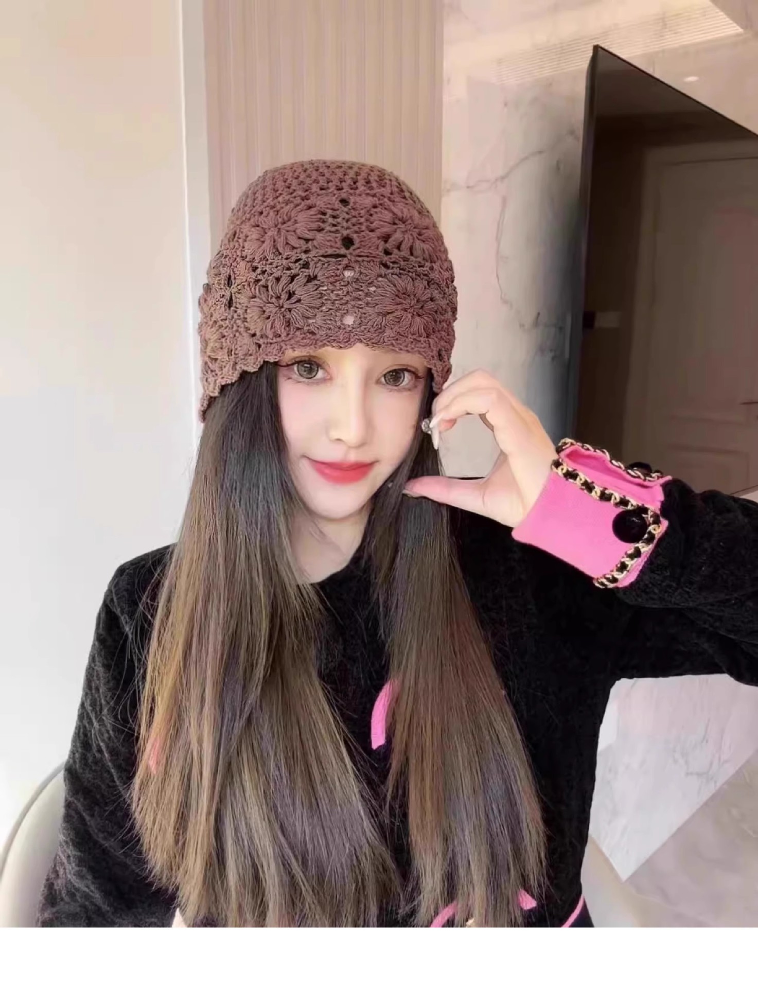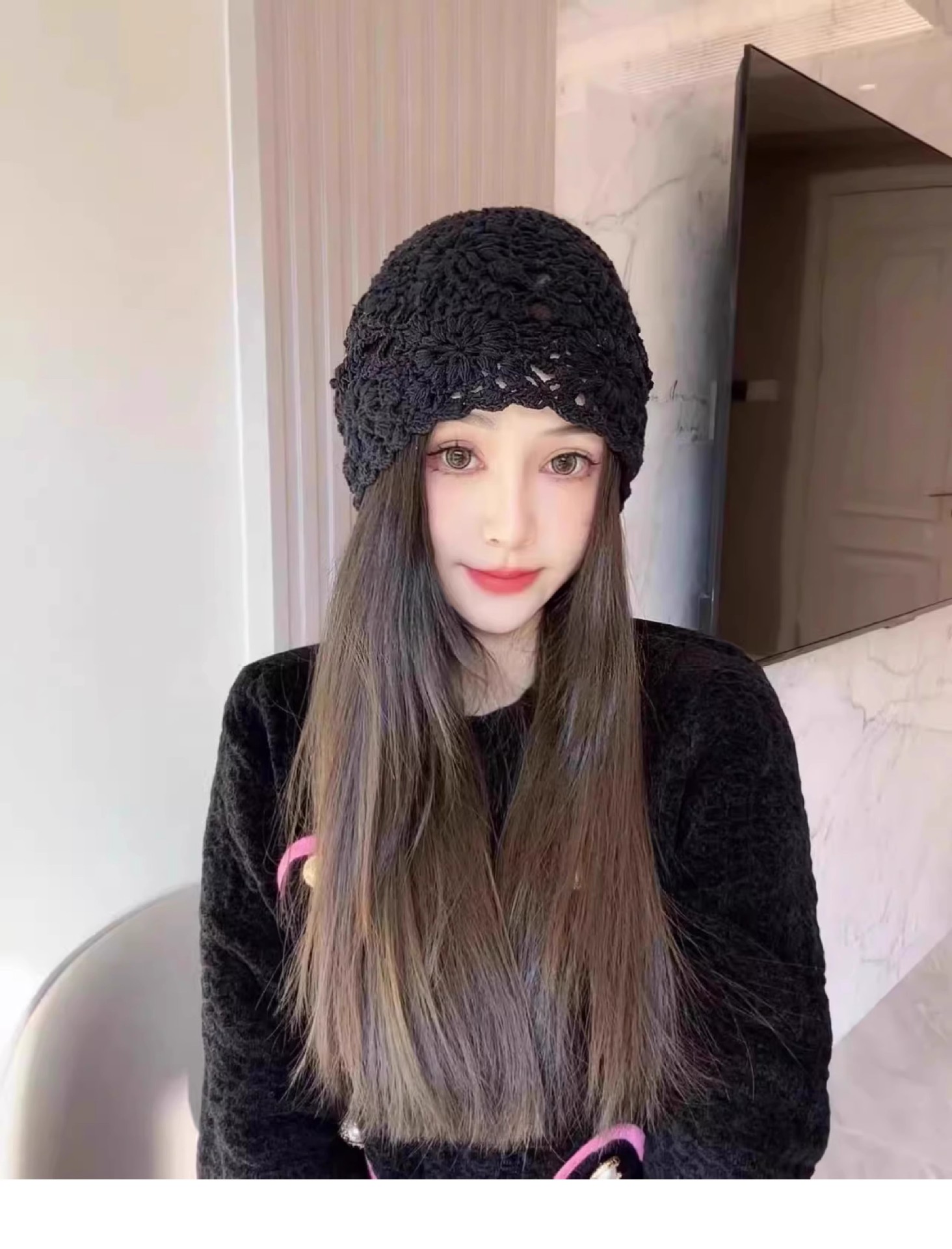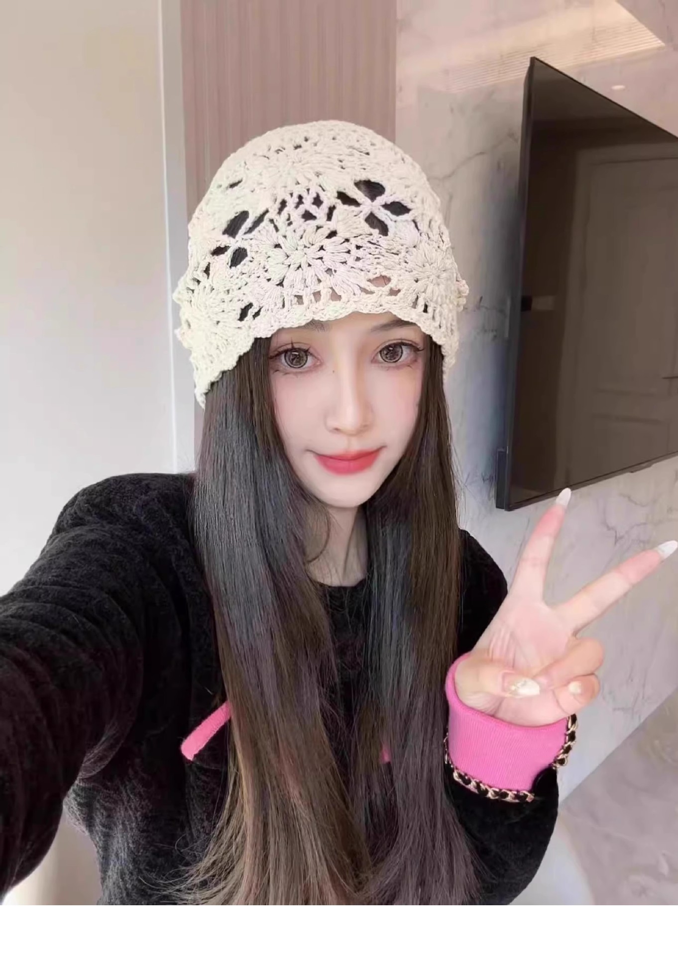 镂空编织包头帽子女日系薄款毛线帽2024新款针织帽堆蕾丝帽休闲