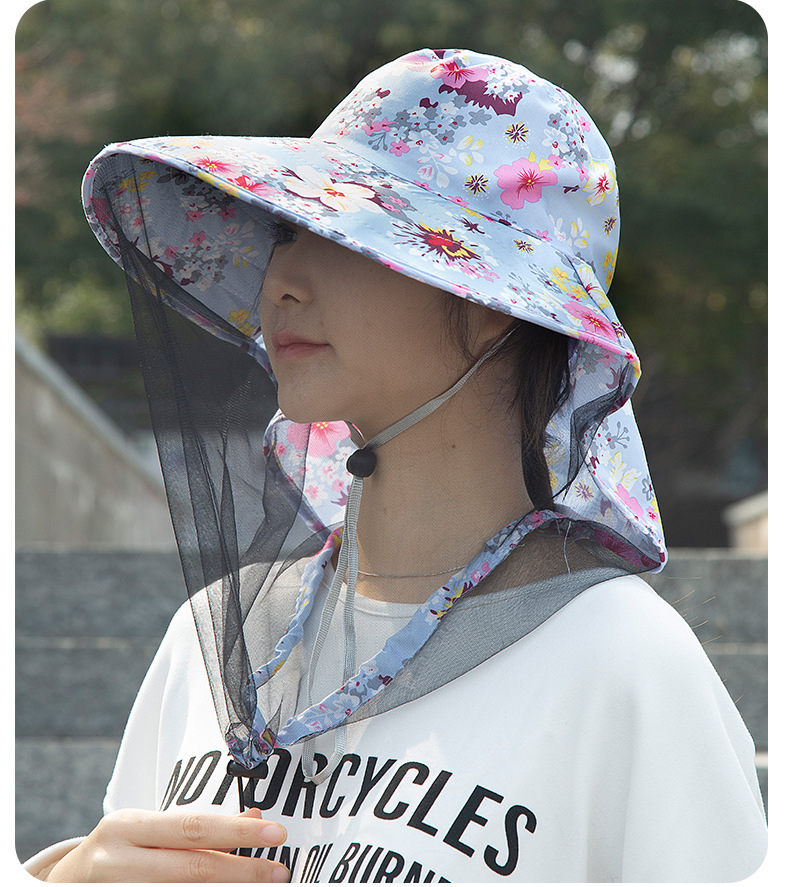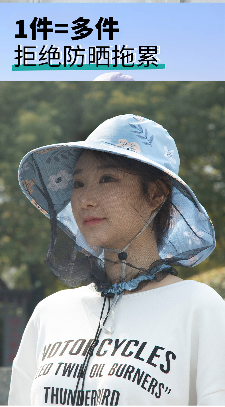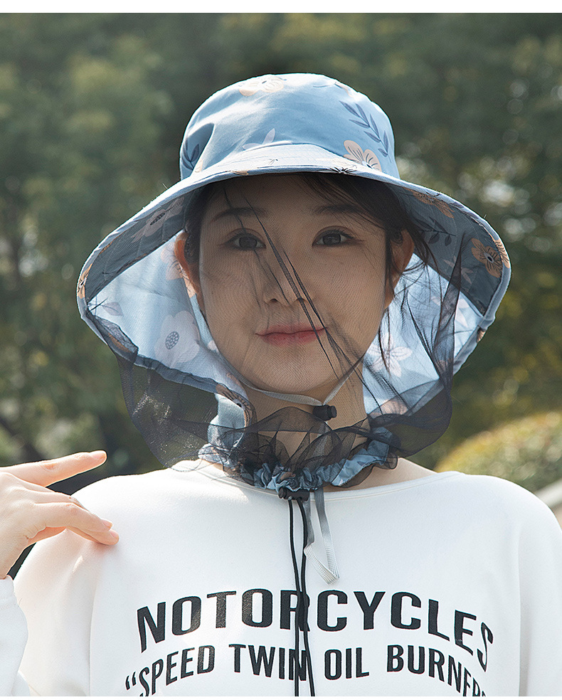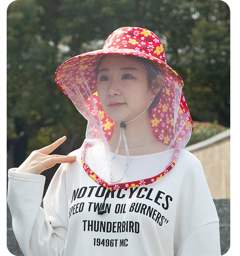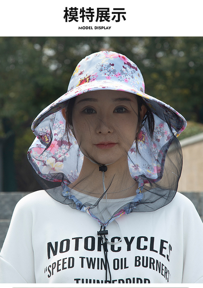 新款防晒防蚊虫大檐帽男女户外网纱面罩钓鱼登山露营春夏季太阳帽