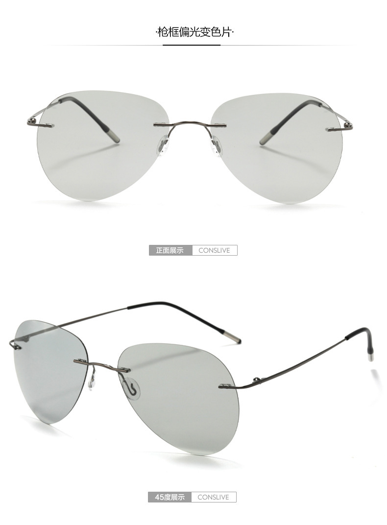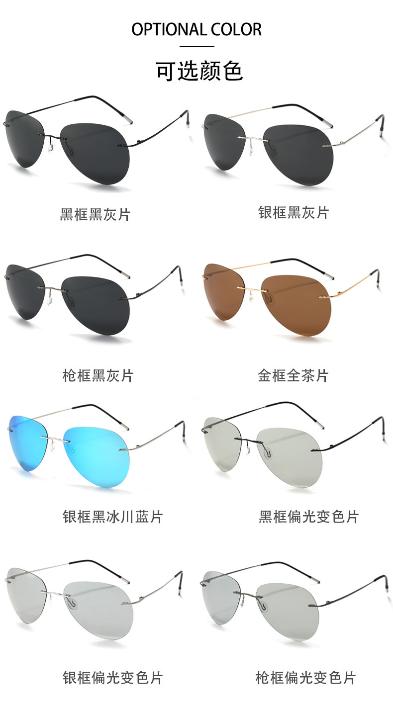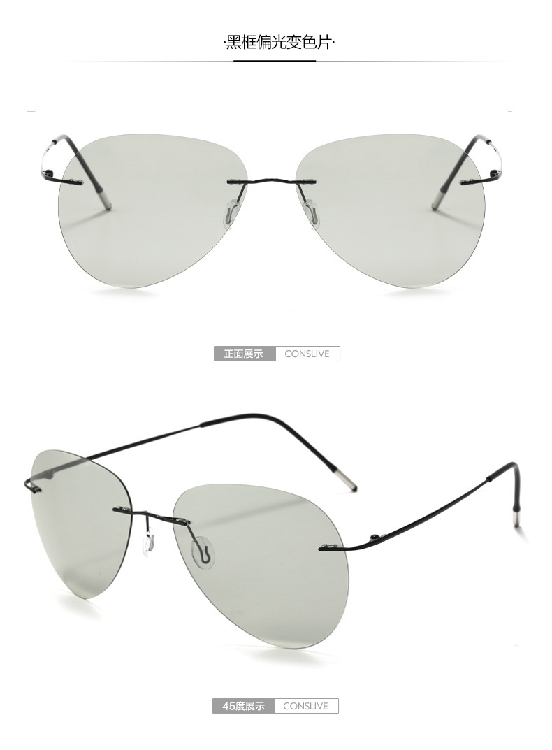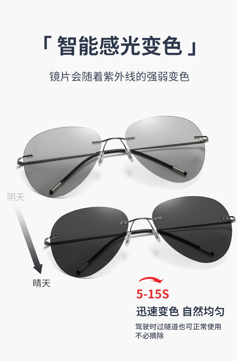 新款无框变色偏光太阳镜超轻记忆钛合金墨镜男开车防紫外线蛤蟆镜
