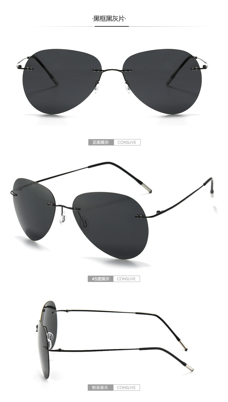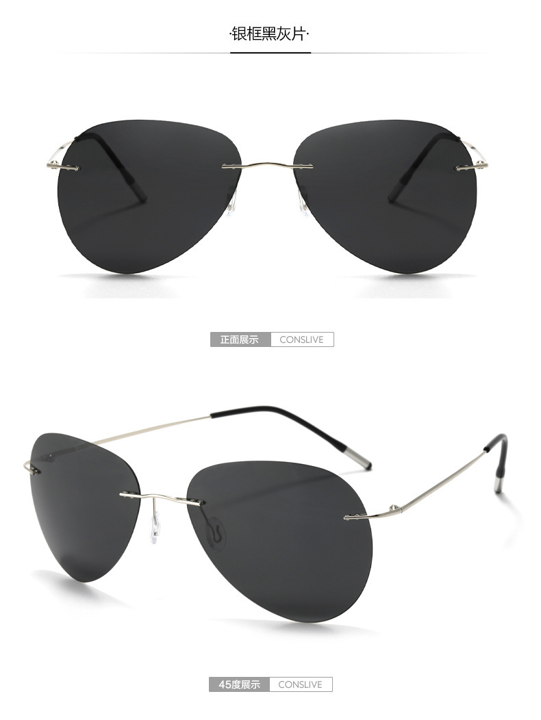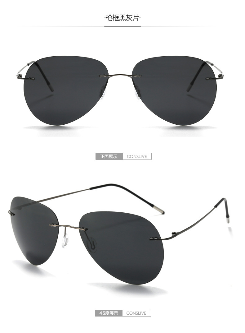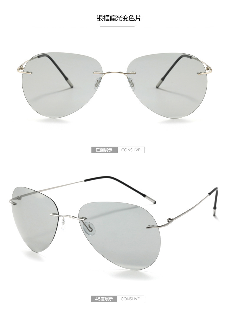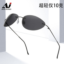新款无框变色偏光太阳镜超轻记忆钛合金墨镜男开车防紫外线蛤蟆镜