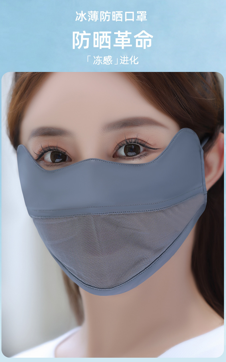夏季防晒口罩冰丝护眼角透气户外遮阳防紫外线UPF50+网纱防晒口罩