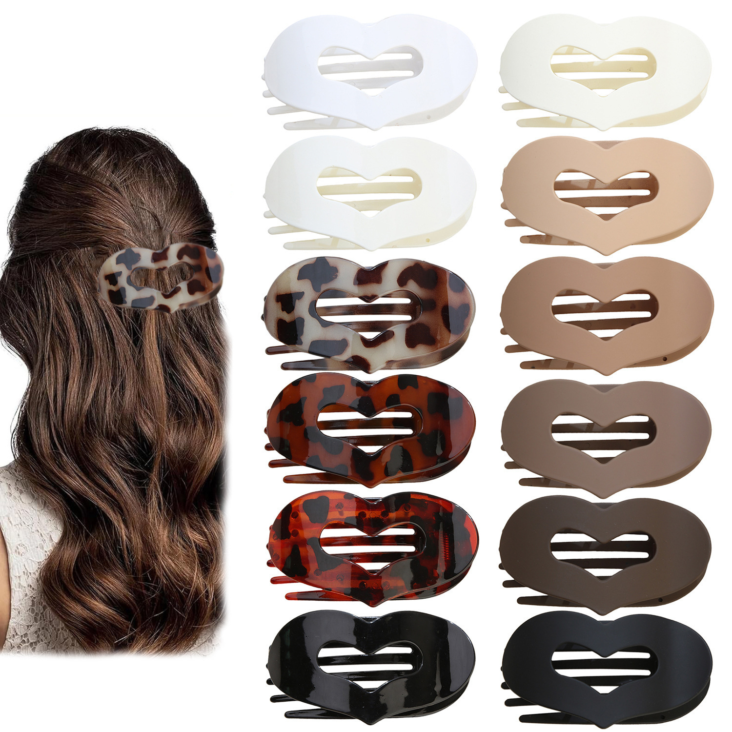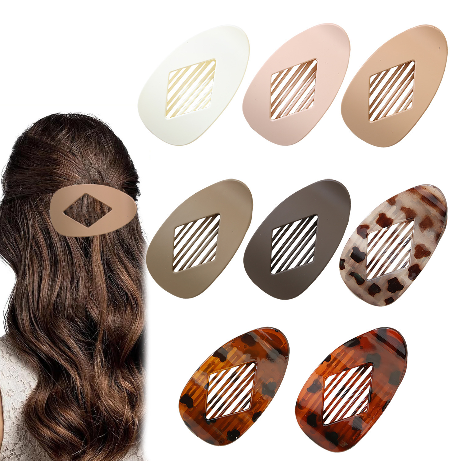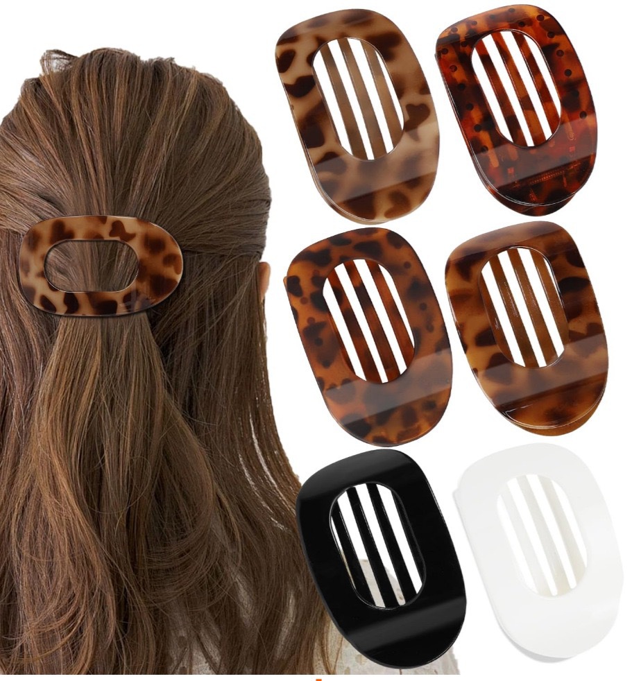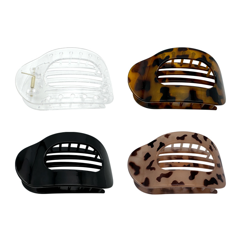 跨境新款扁平椭圆发夹后脑勺盘发抓夹弯曲弧形设计气质鲨鱼夹发饰