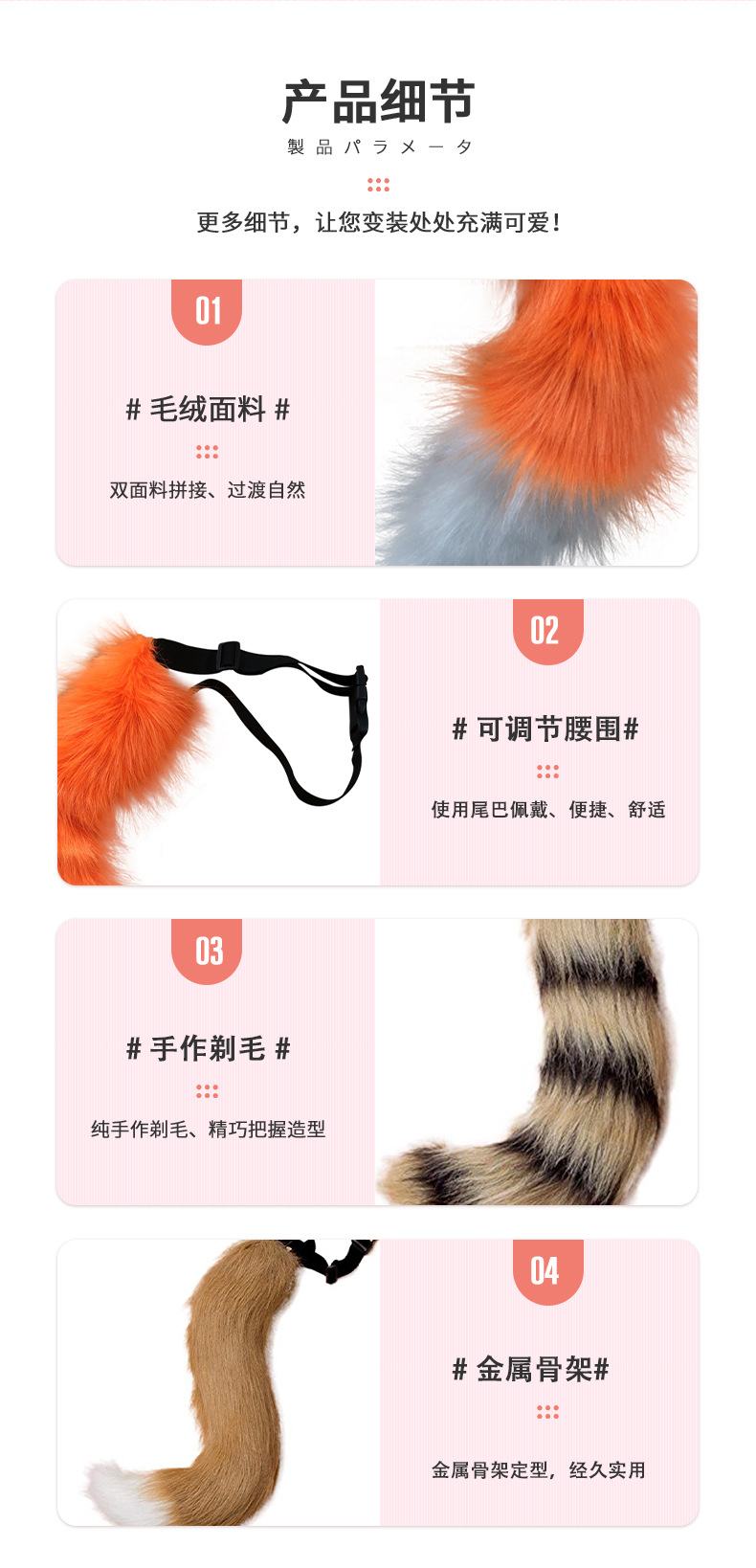 万圣节新款cosplay手作仿真狐狸尾巴亚马逊可弯曲调节兽尾配饰