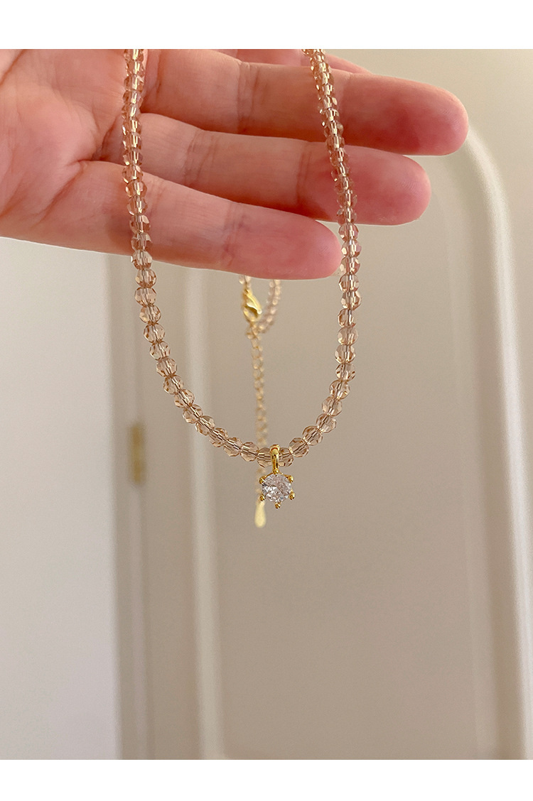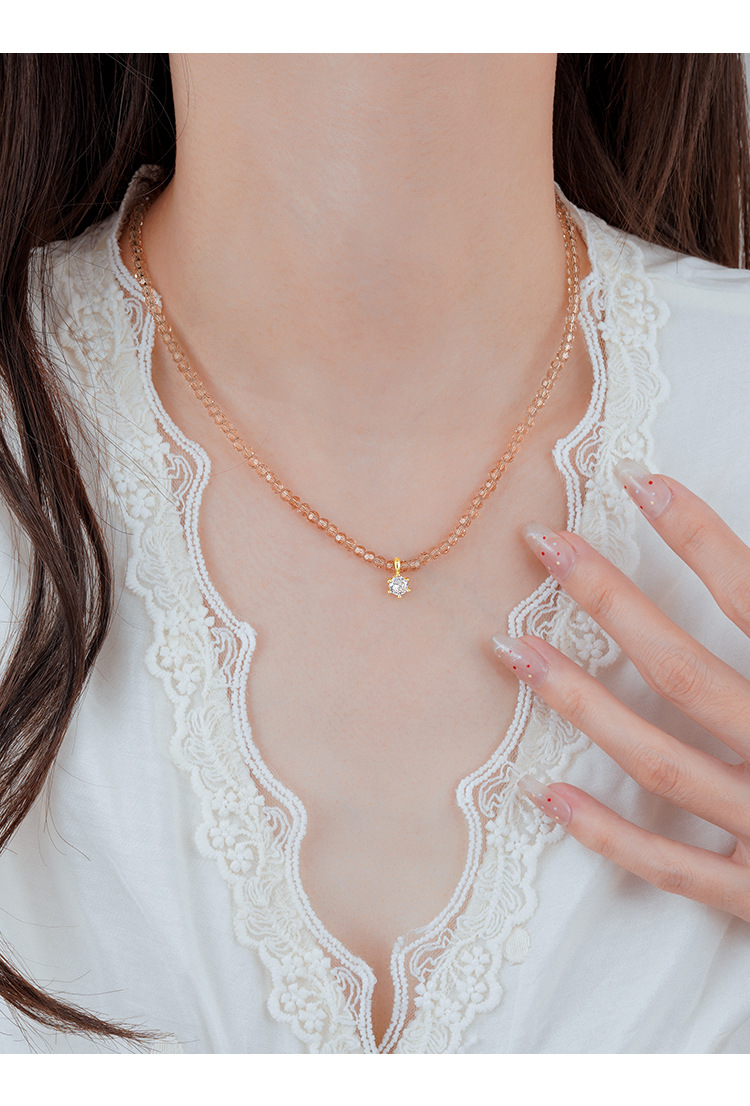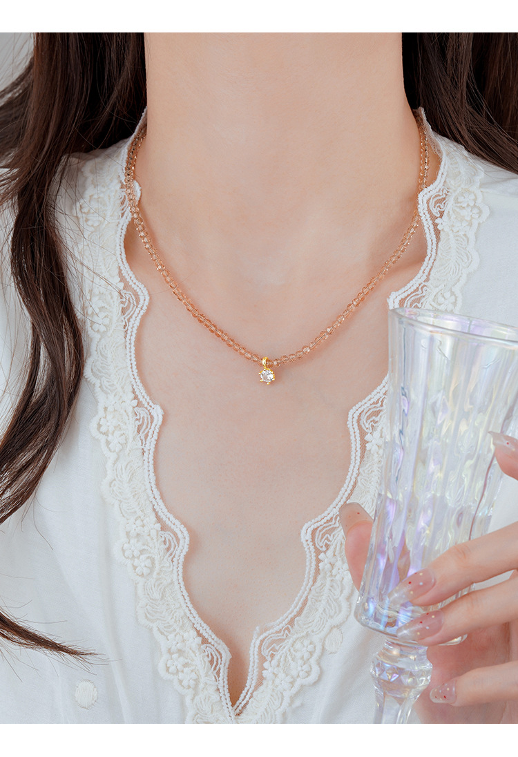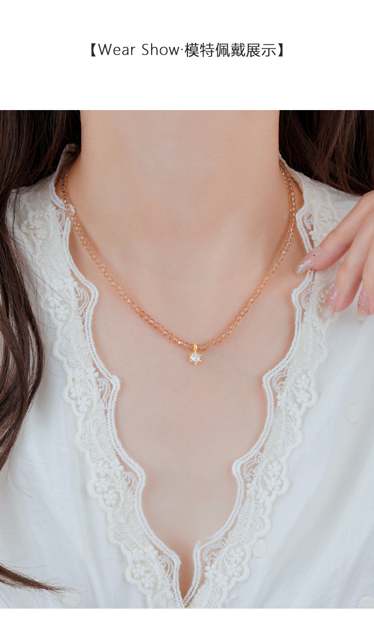 单钻项链女2025新款香槟金时尚小众高级感女款锁骨链锆石女项链