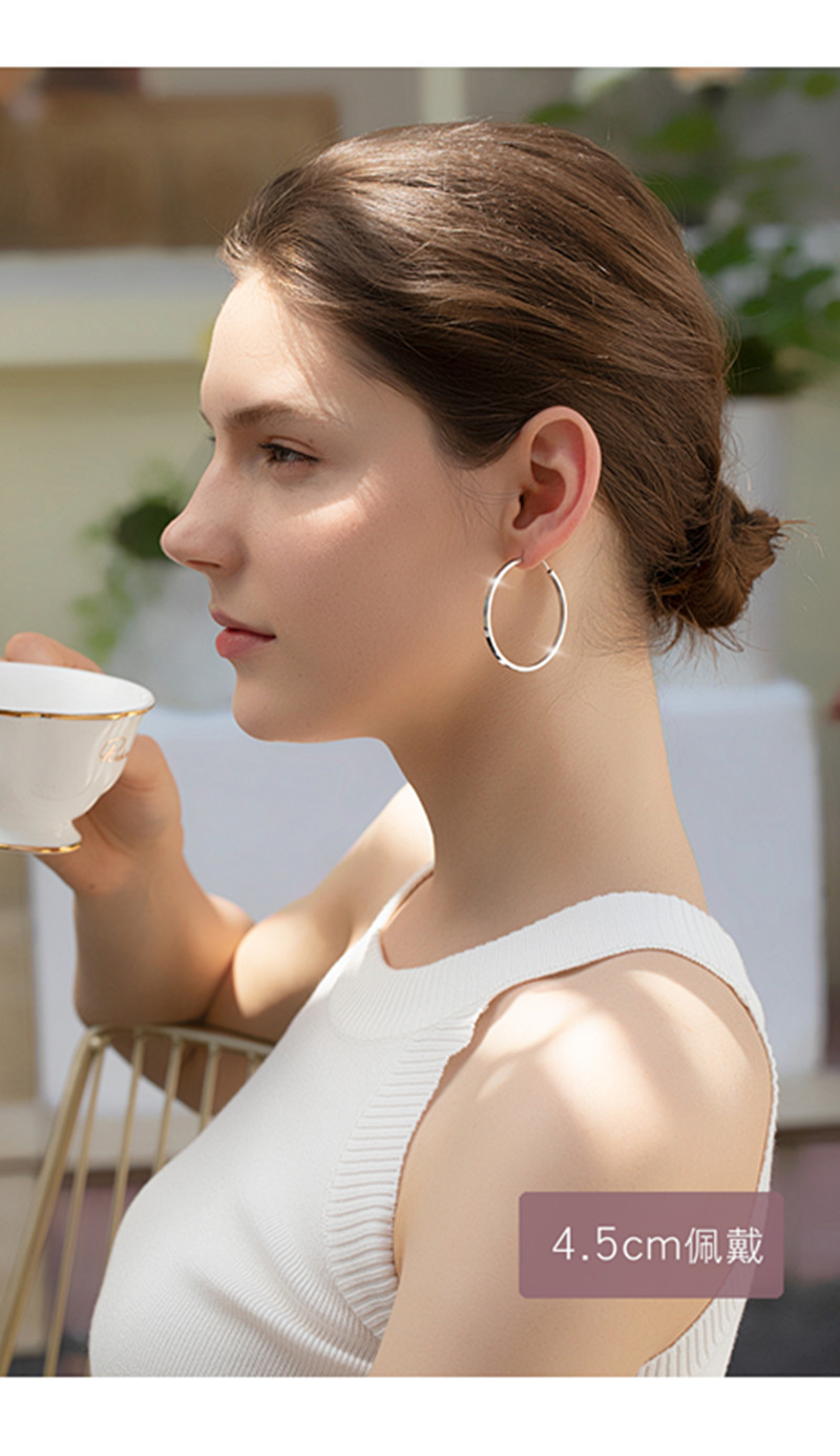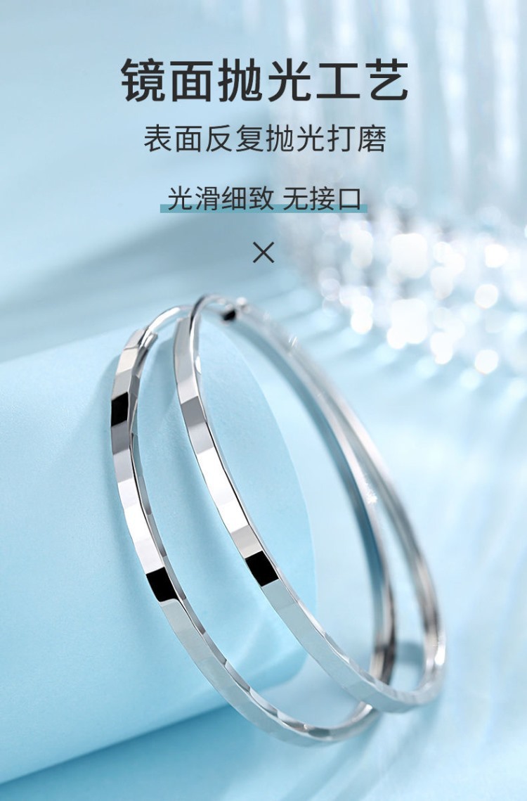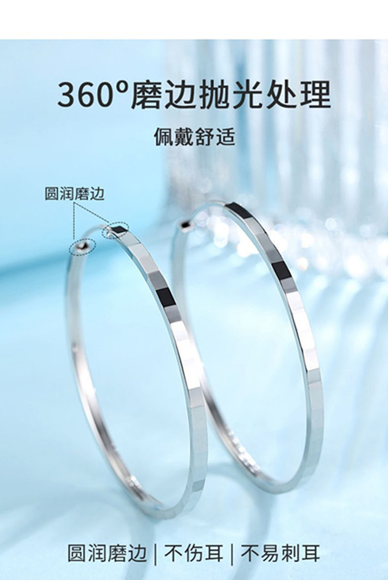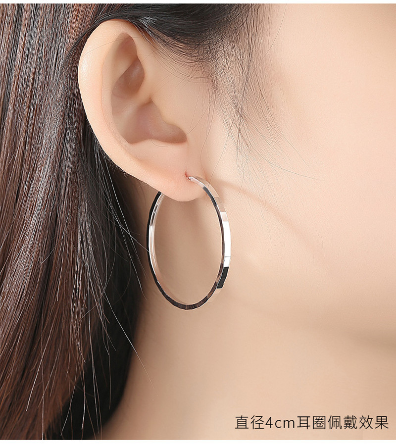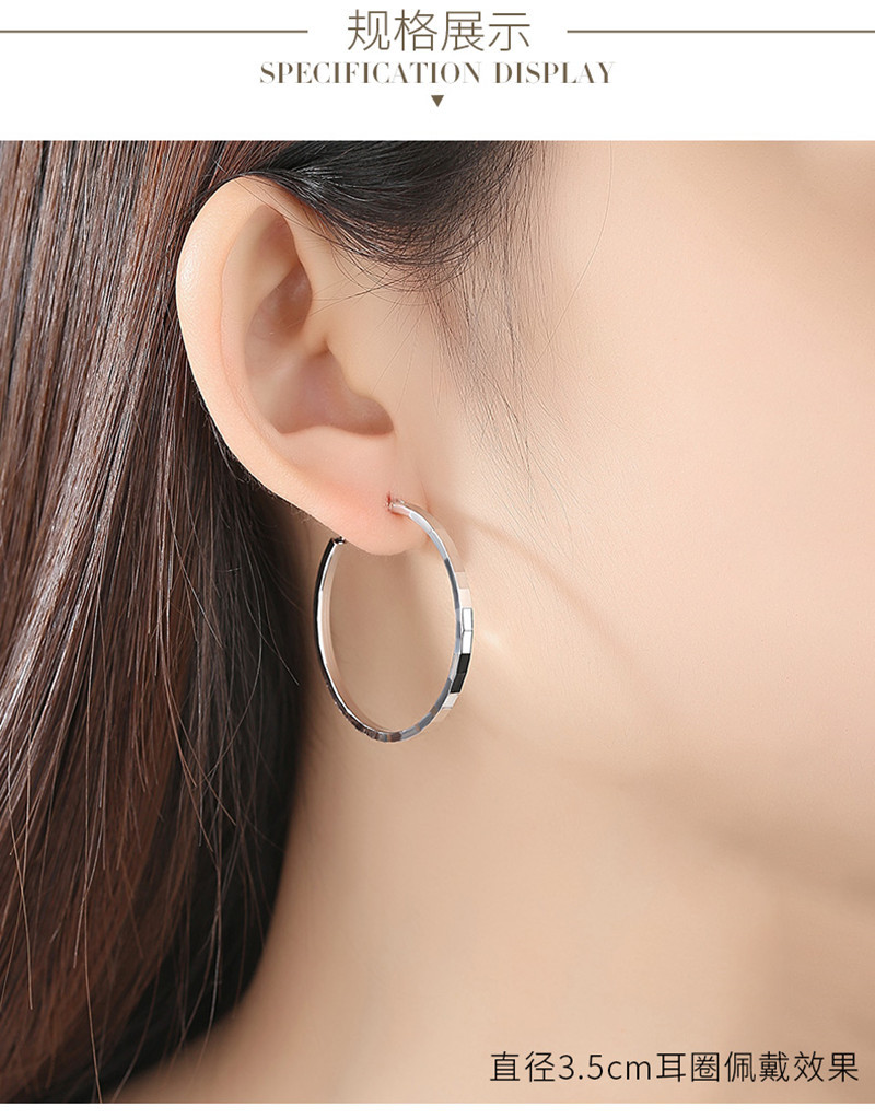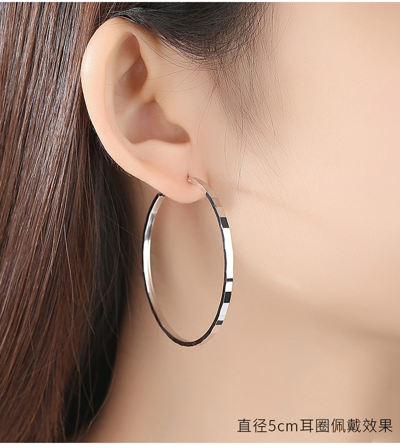 大耳环三面车花925银针白铜镀白金耳圈大圈圈耳环夸张耳钉耳饰