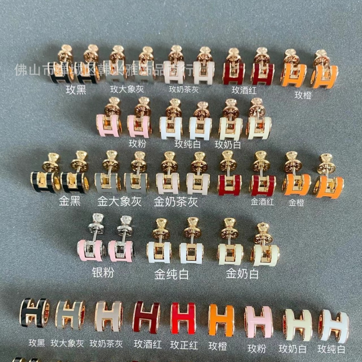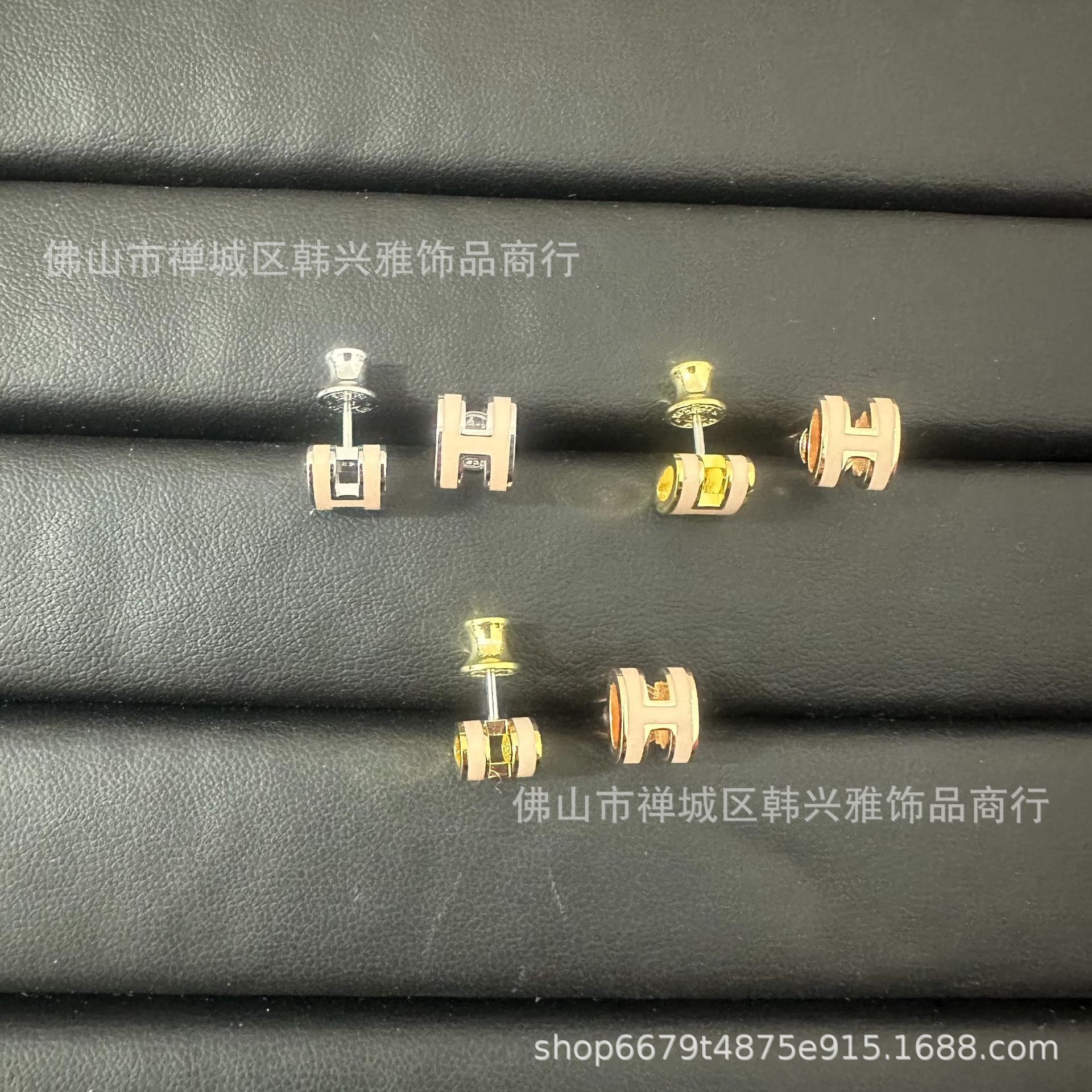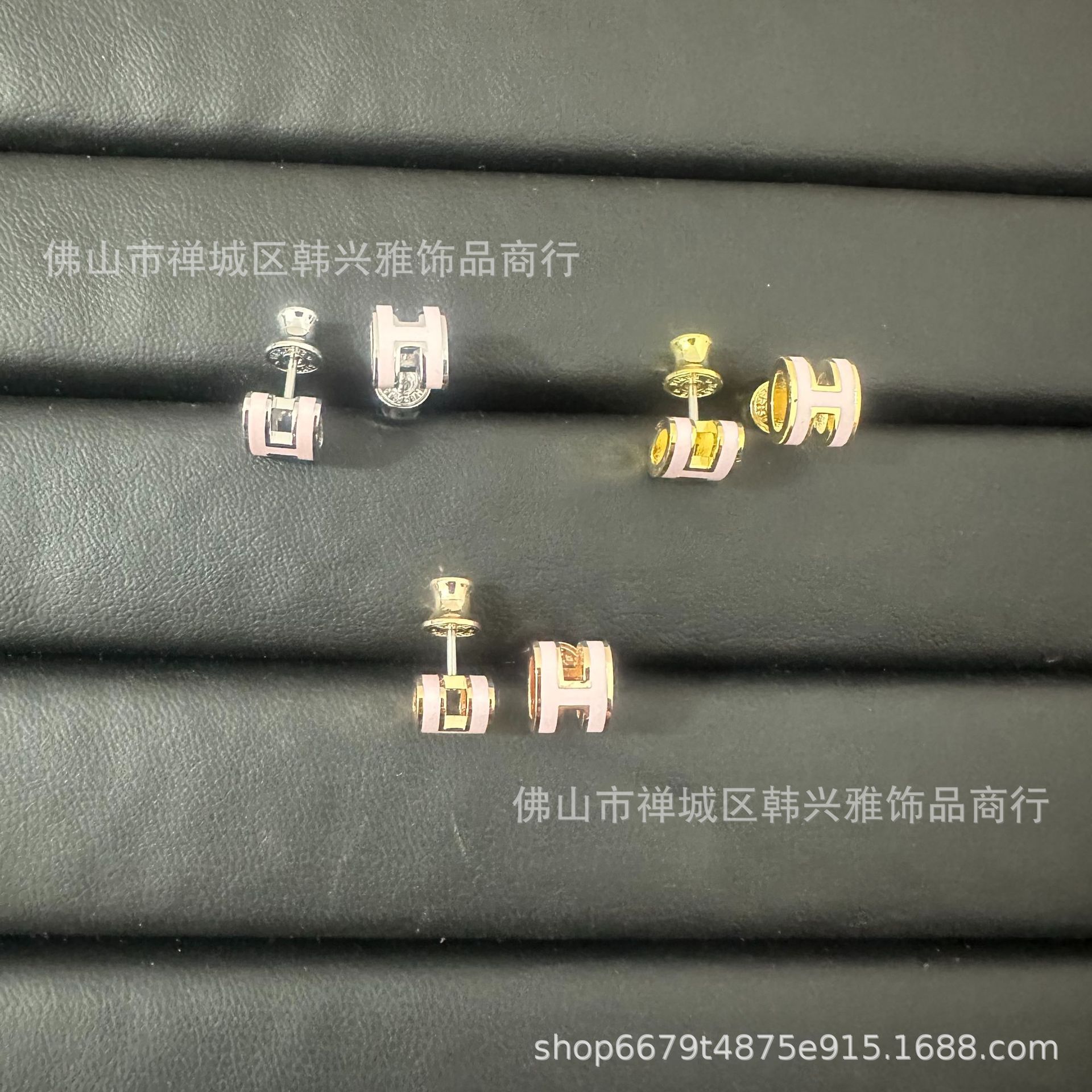 爱马家H耳钉耳环女H字母CNC高版本珐琅18k玫瑰金时尚轻奢直播代发