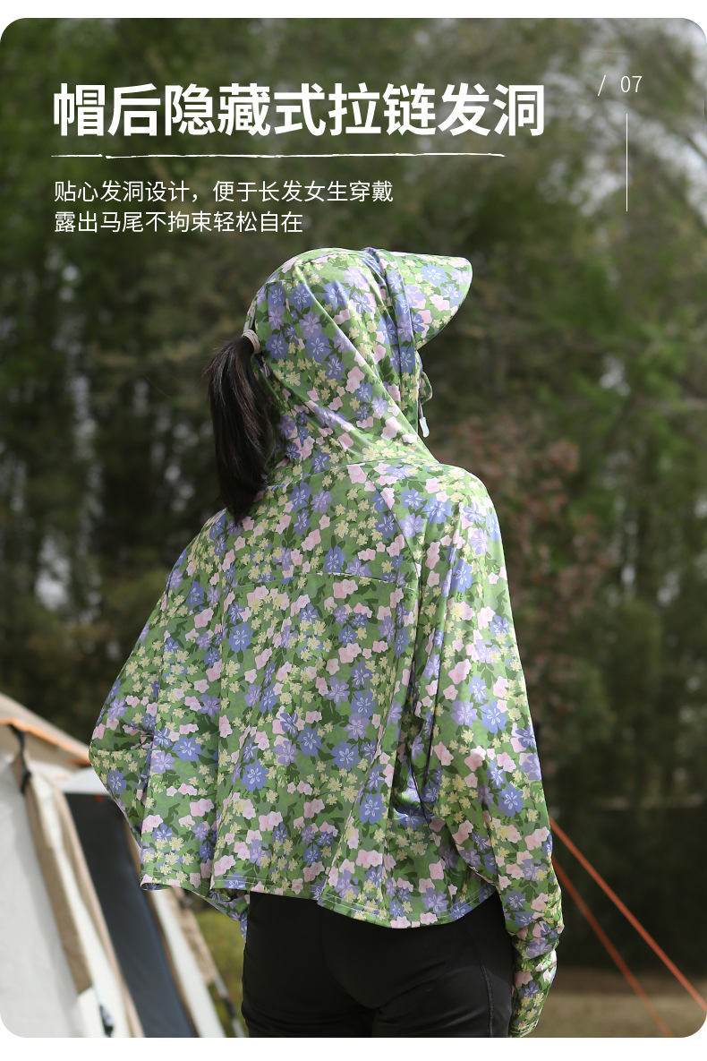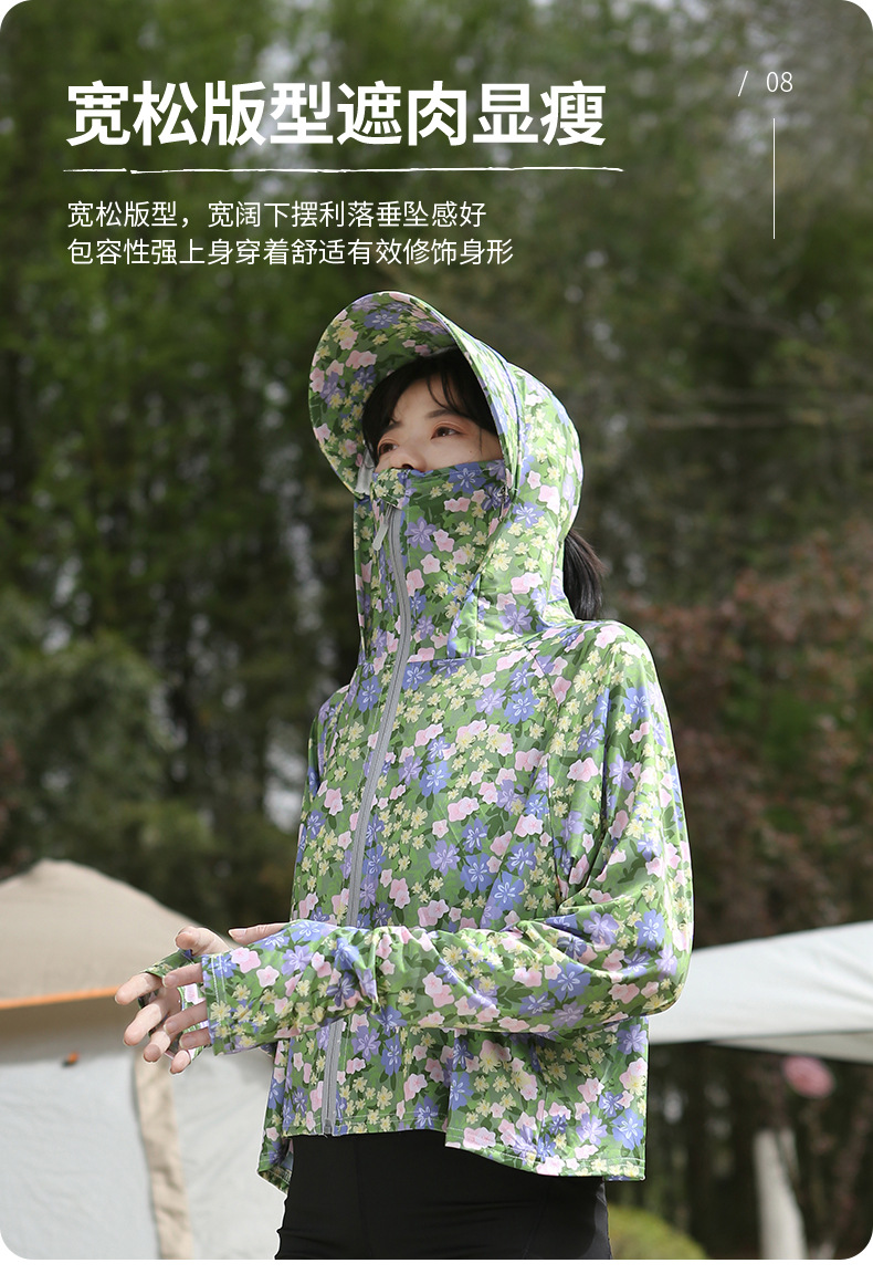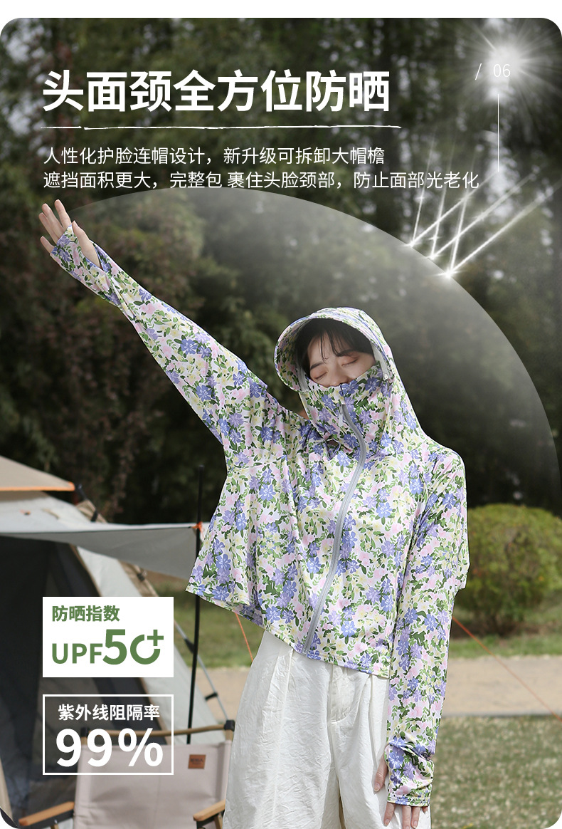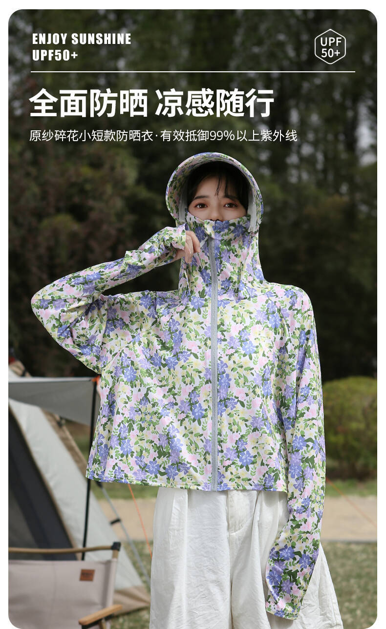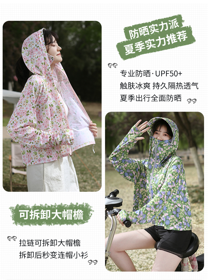 防晒衣女2025新款夏季防紫外线冰丝防晒服时尚碎花披肩花色拆卸帽