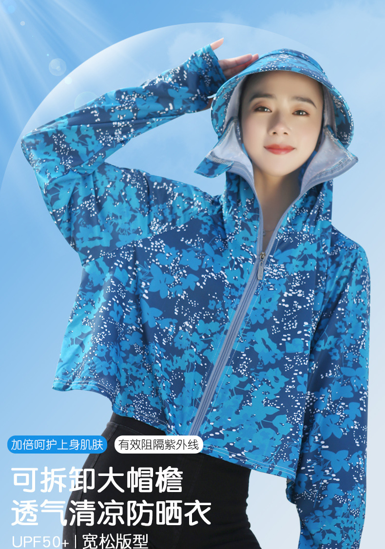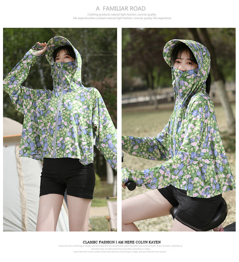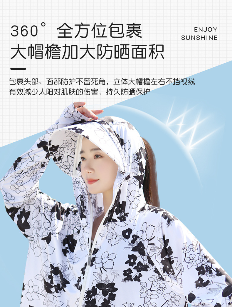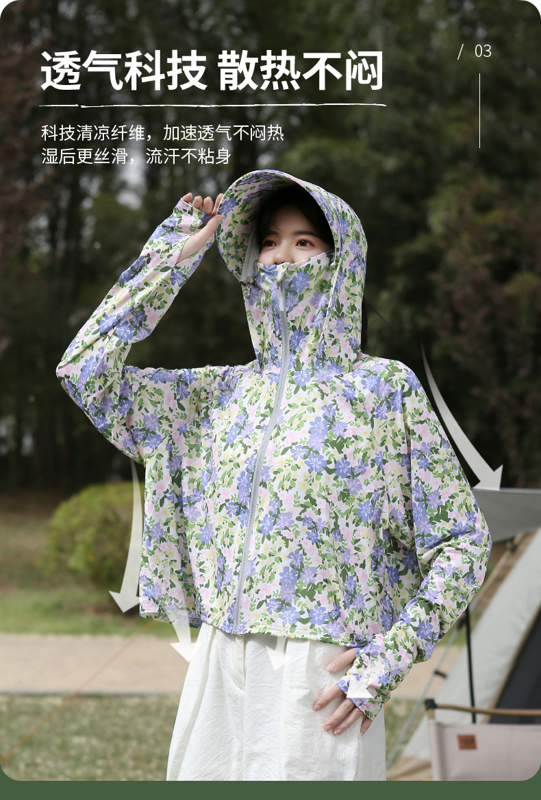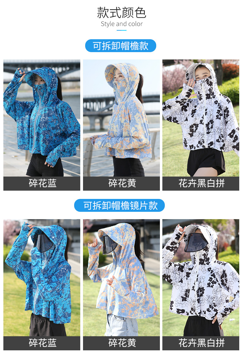 防晒衣女2025新款夏季防紫外线冰丝防晒服时尚碎花披肩花色拆卸帽