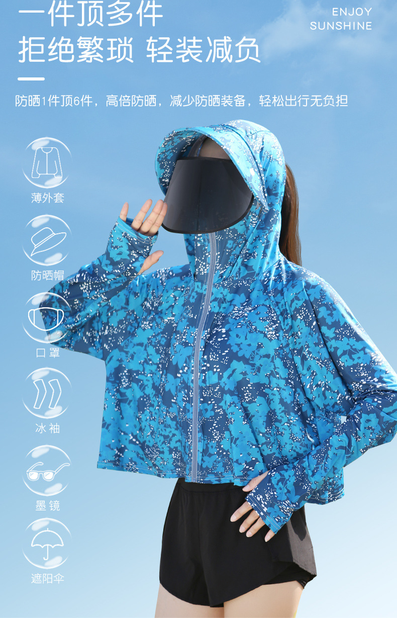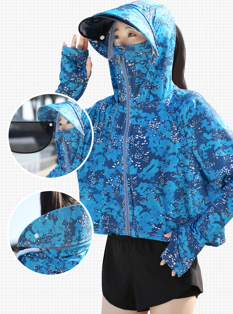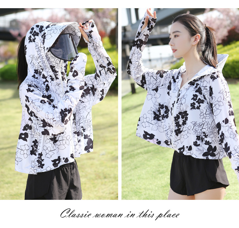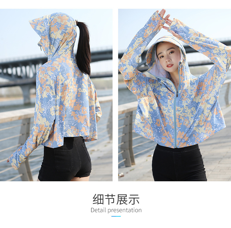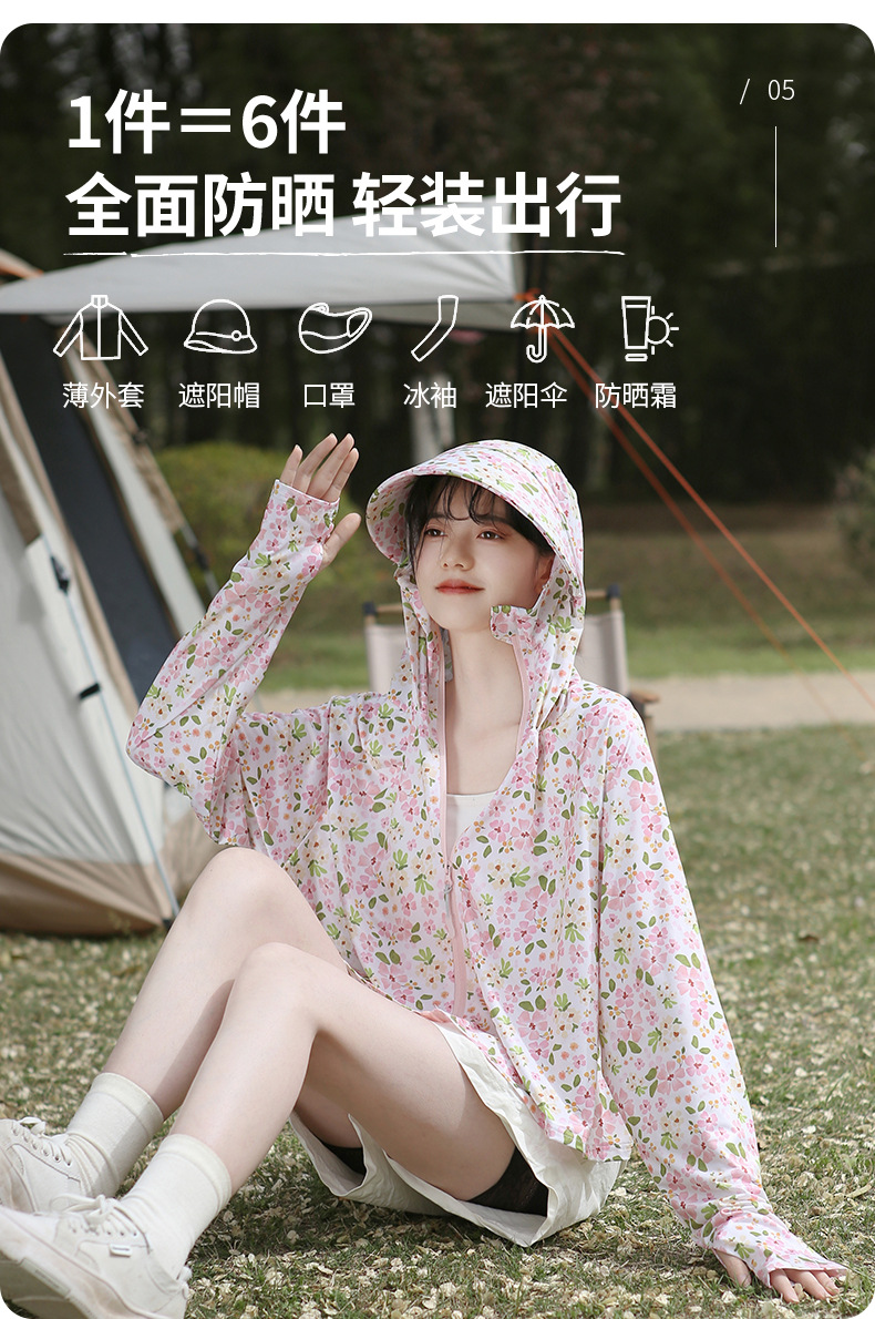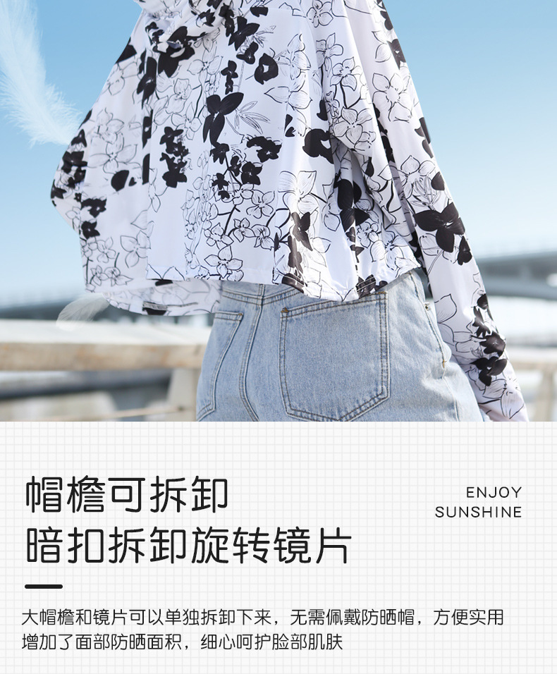 防晒衣女2025新款夏季防紫外线冰丝防晒服时尚碎花披肩花色拆卸帽