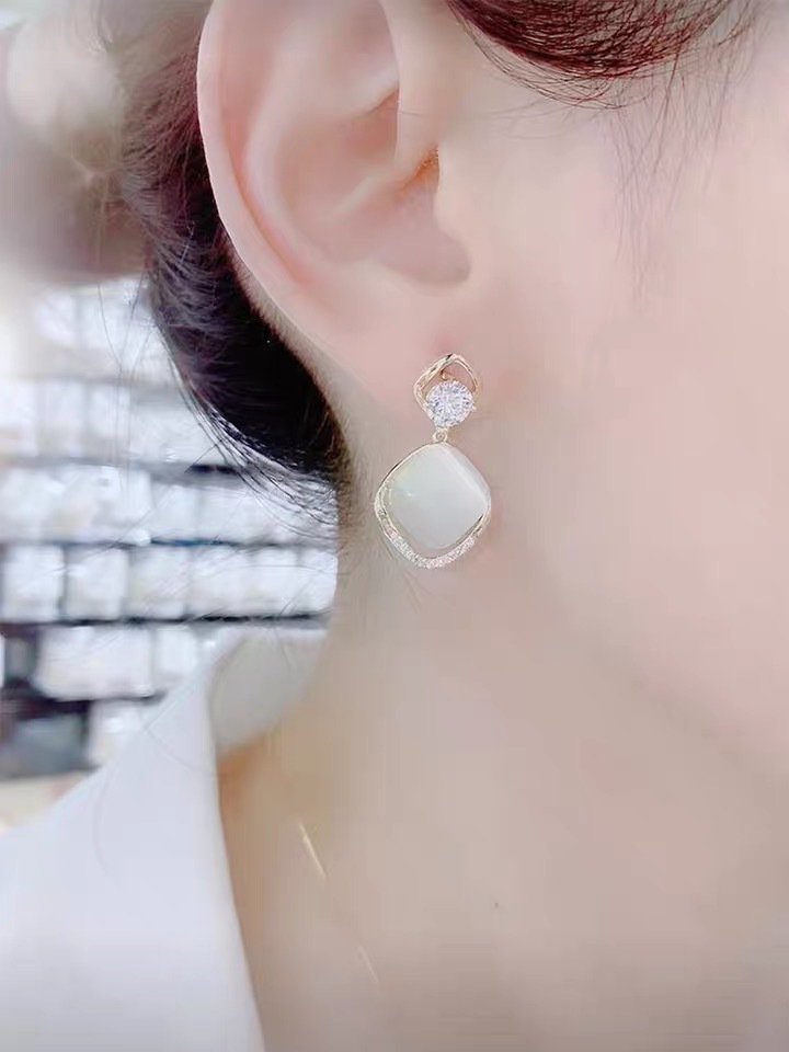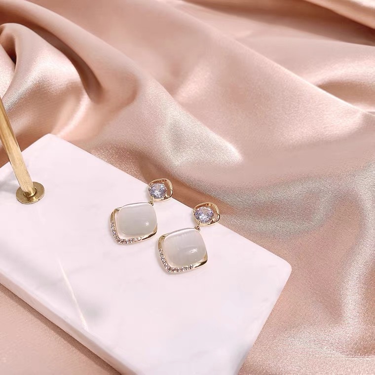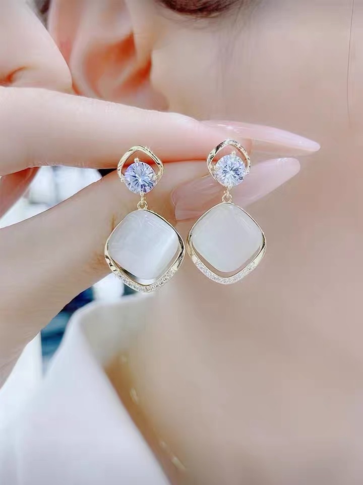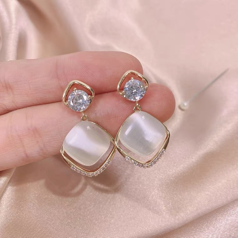 猫眼石耳钉女2023年新款潮气质耳环高级感菱形显瘦轻奢银耳坠几何