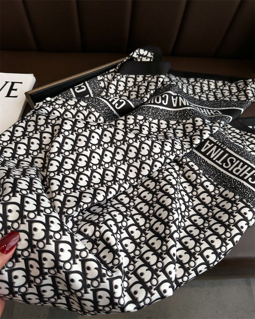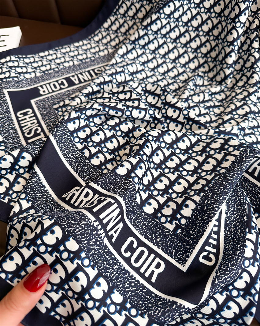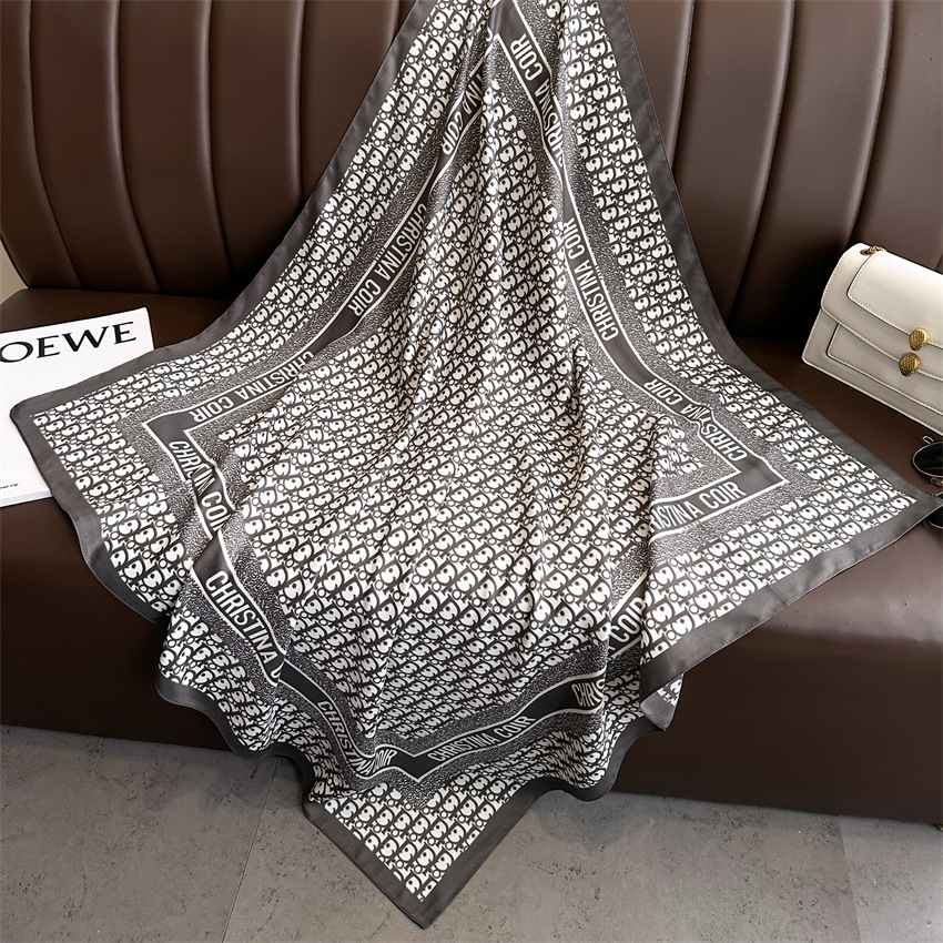轻奢百搭印花丝巾90cm斜纹绸围巾经典字母大方巾女士新款披肩头巾