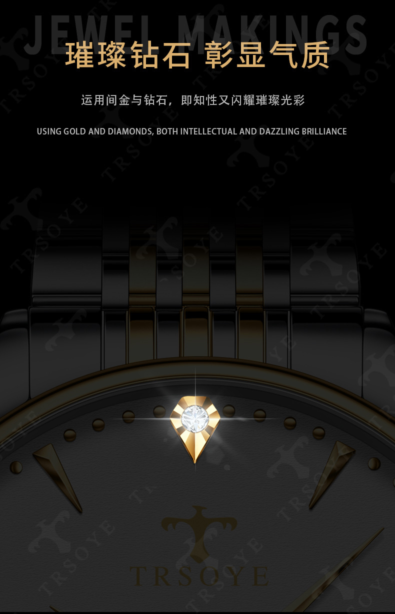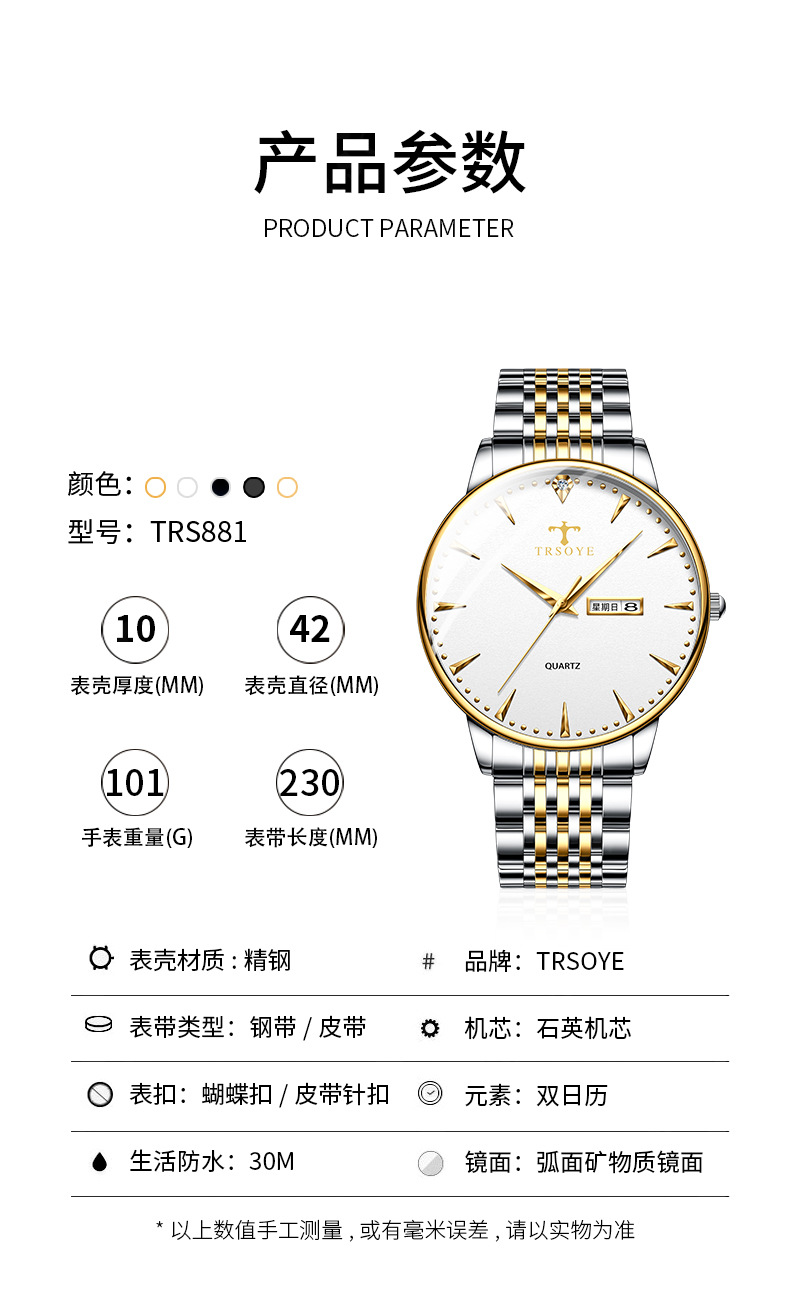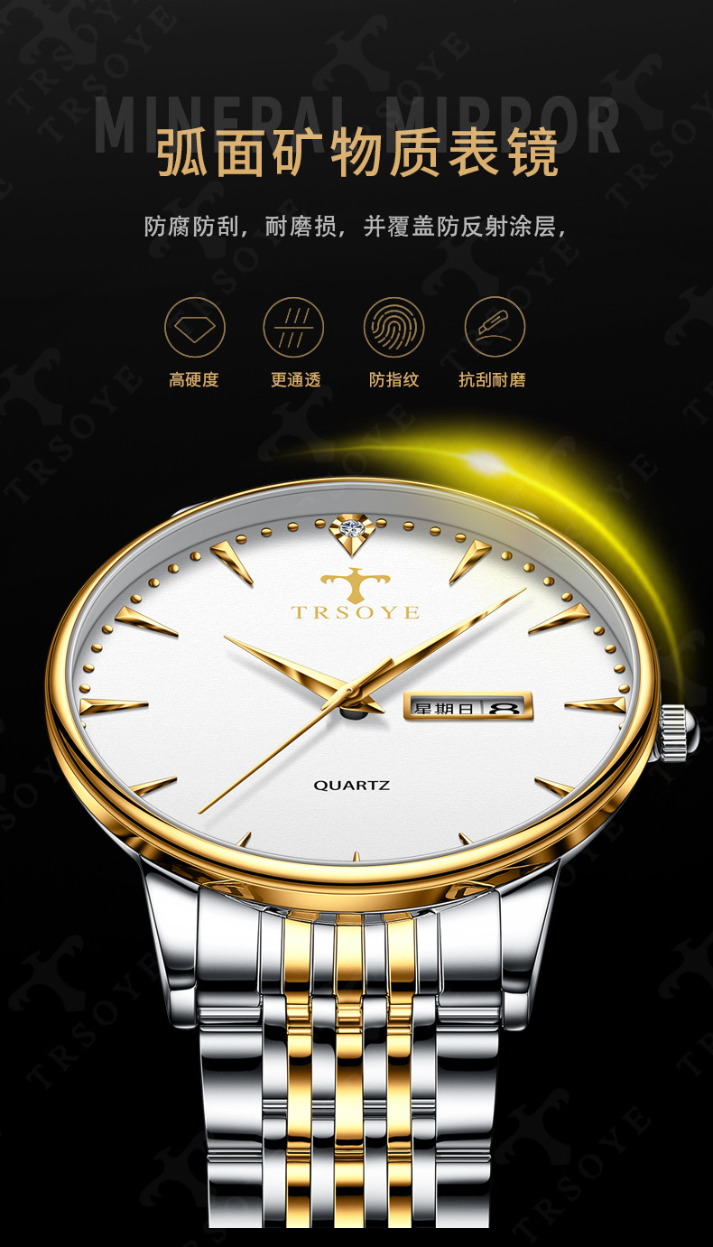 瑞士品牌男士手表商务防水夜光双日历石英钢带表直播外贸一件代发