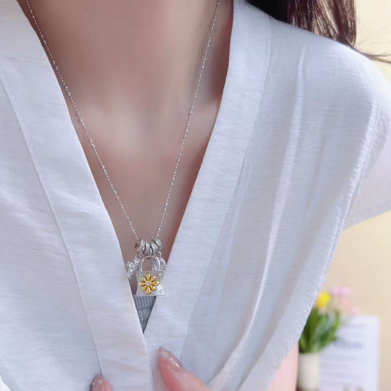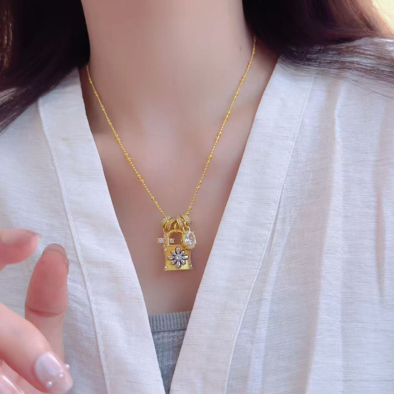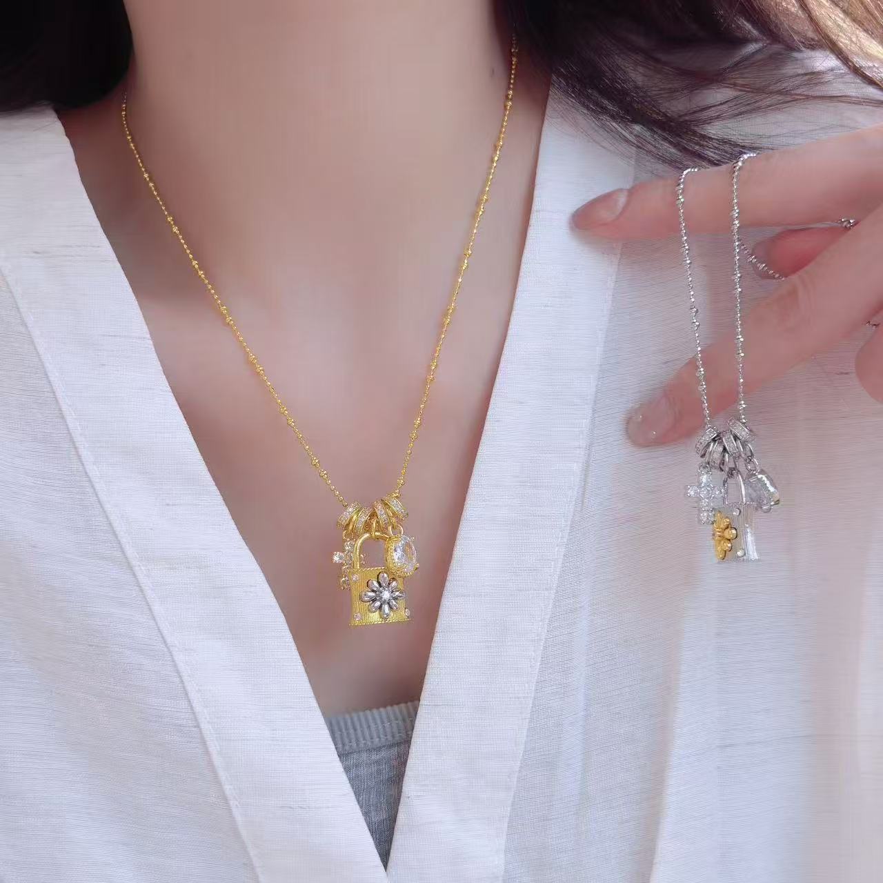 重工轻奢复古锆石圈圈花朵锁头项链女气质简约个性时尚颈链锁骨链