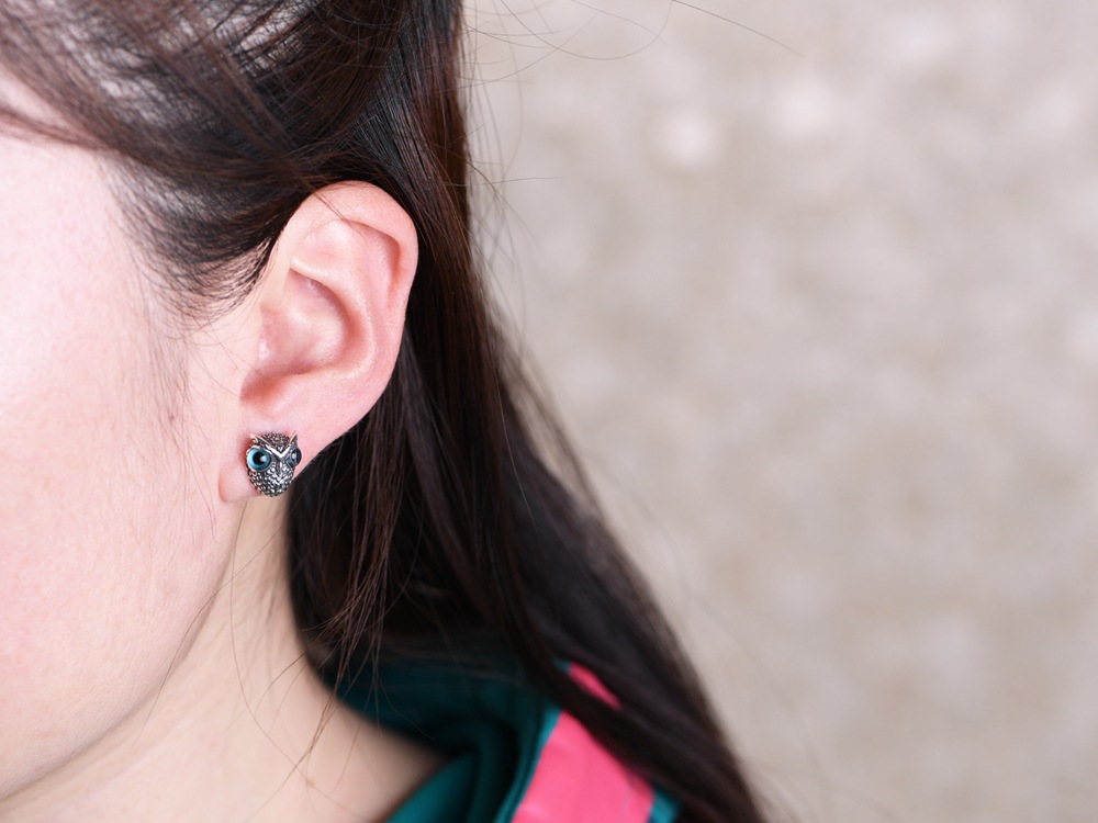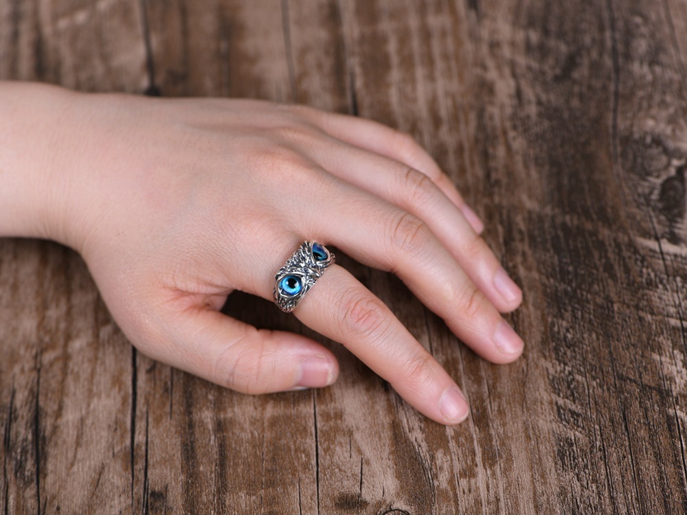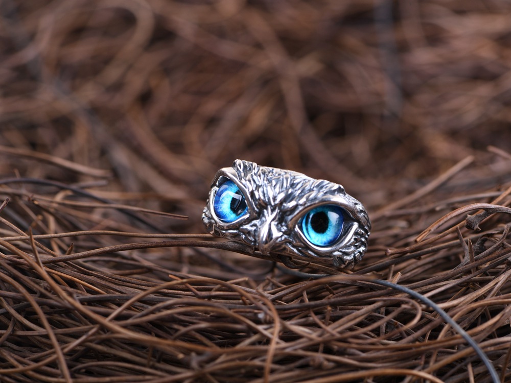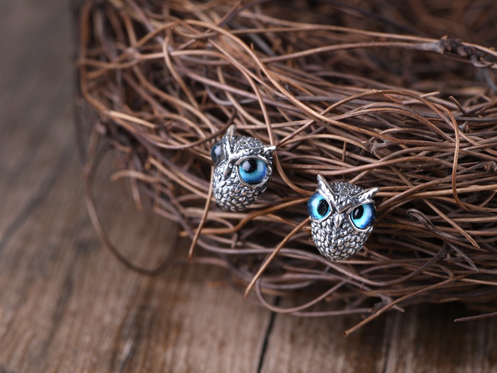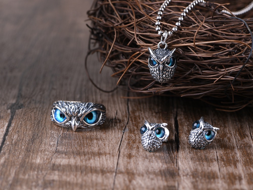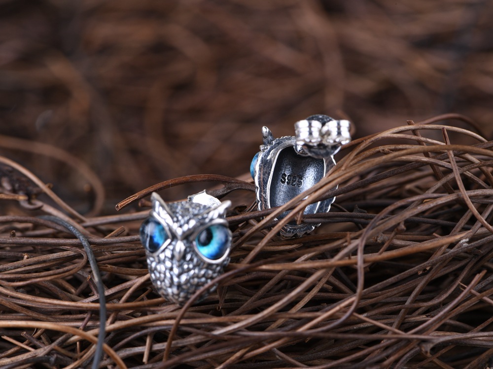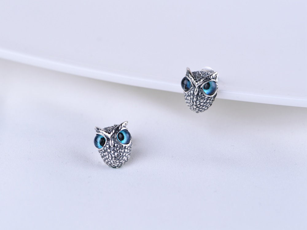 金鹿王 S925银复古耳钉吊坠饰品指环批发 跨境男女设计猫头鹰戒指