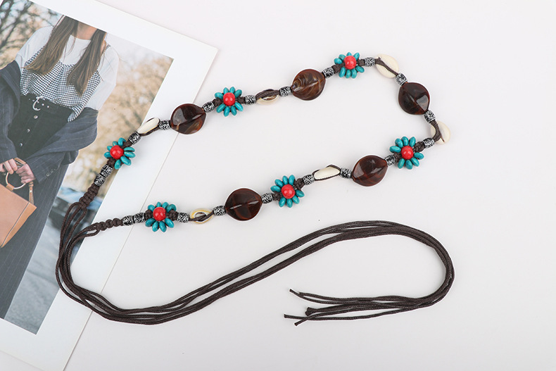 民族复古编织腰带风腰女士手工西米亚百搭腰链简约连衣裙设计装饰