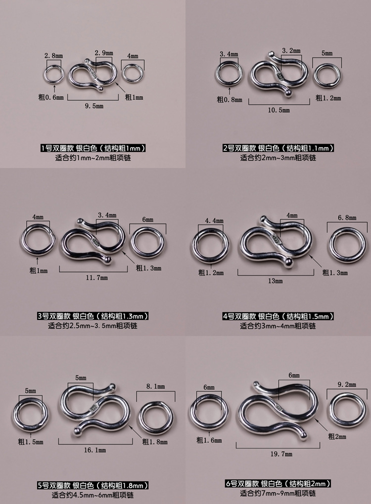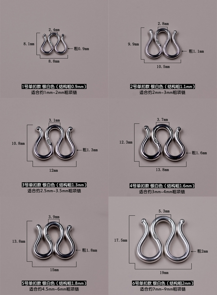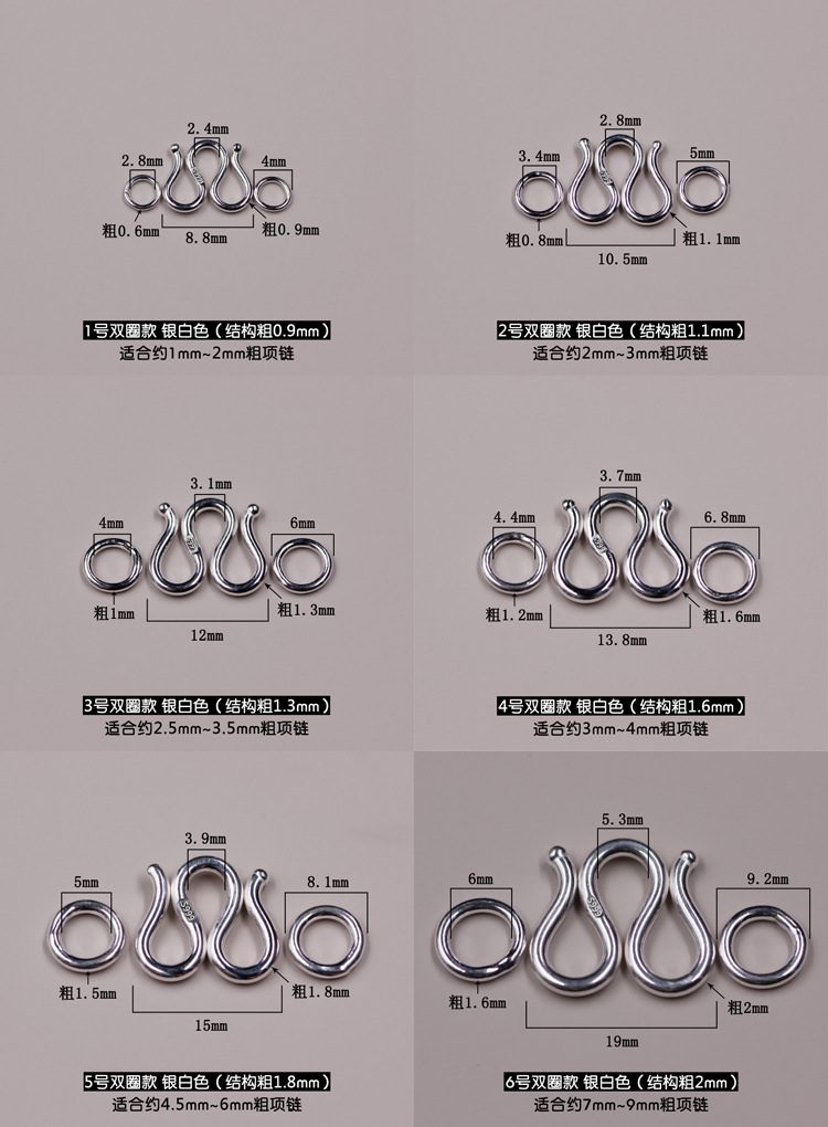 S999足银配件W扣手工配件搭扣m扣头珍珠项链接扣佛牌扣两边开带圈