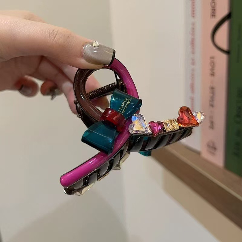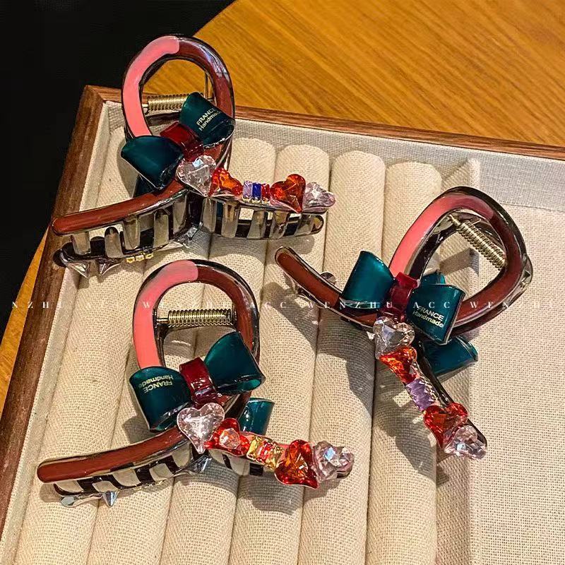 水钻蝴蝶结拼色头饰抓夹后脑勺高级感盘发抓夹时尚百搭鲨鱼夹甜美