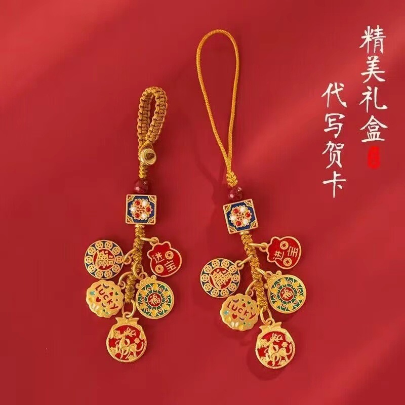 沙金铜一路平安汽车钥匙扣挂件高档个性日进斗金手机链挂饰男女通