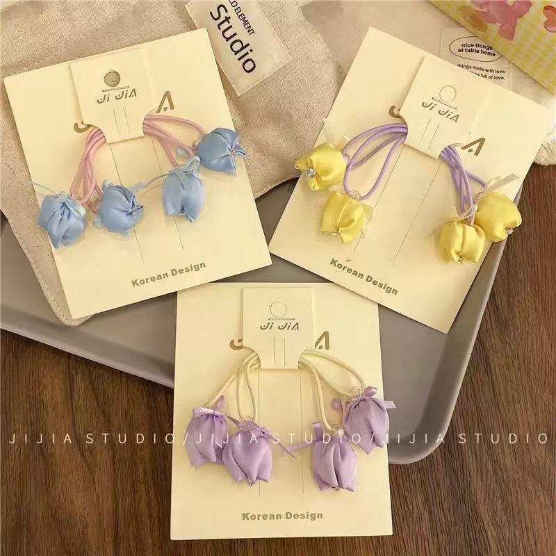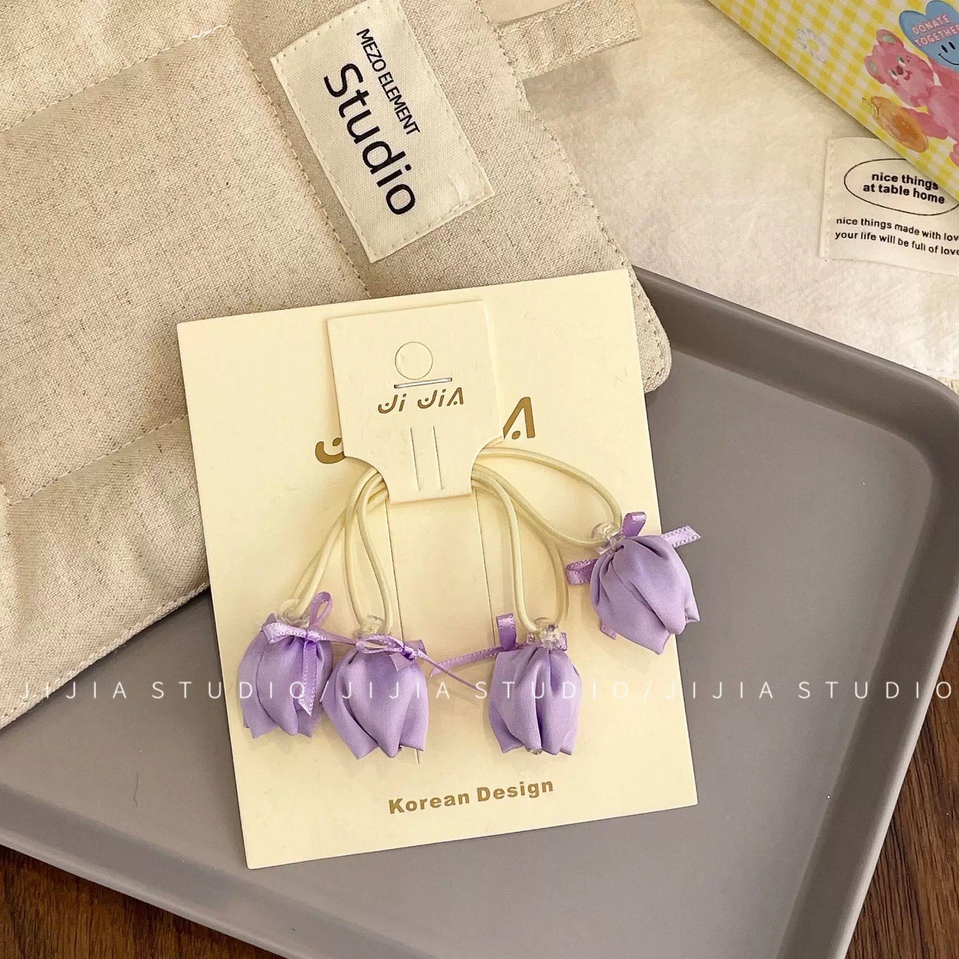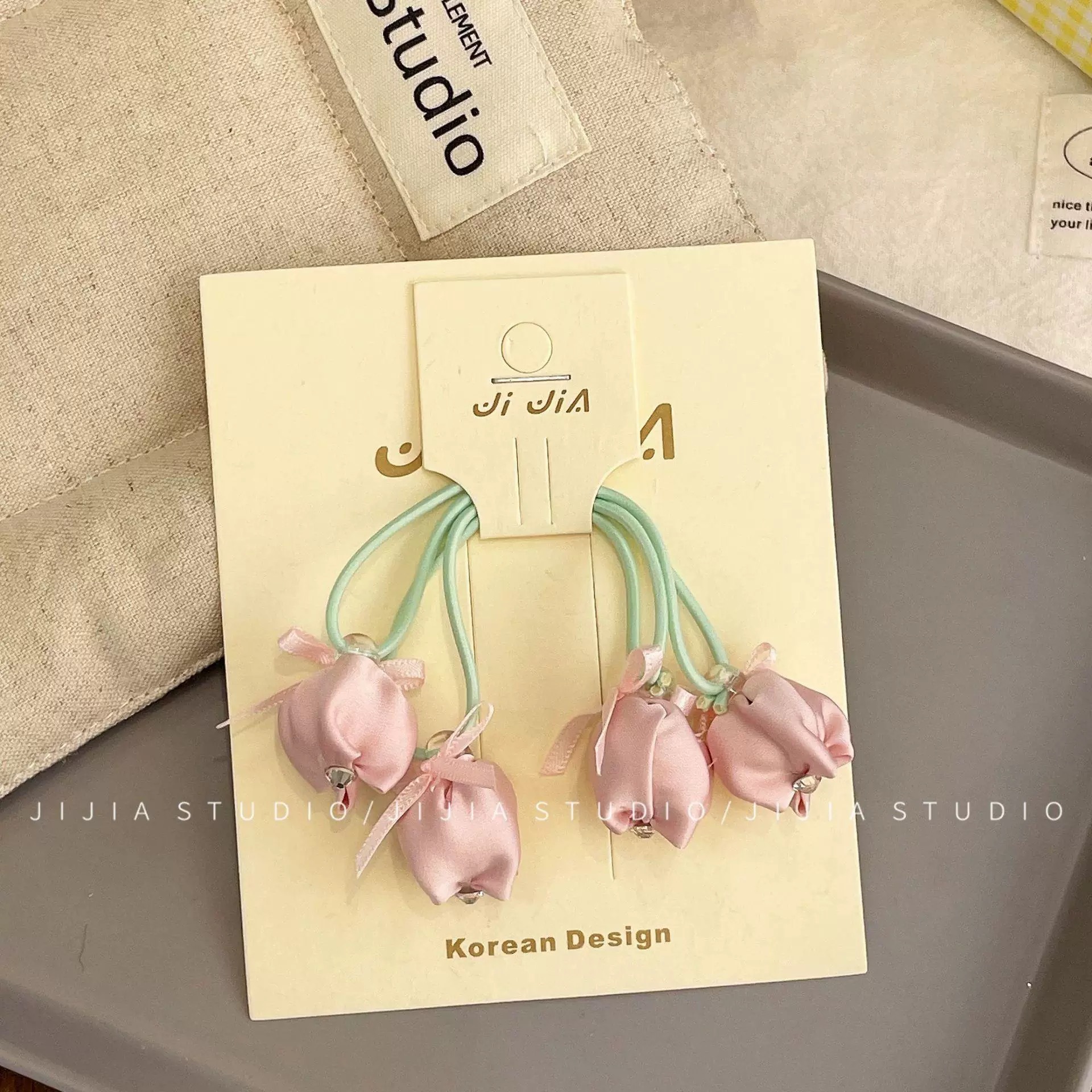 韩系甜美郁金香蝴蝶结发绳皮筋少女心可爱小女孩头绳夏日花朵发饰