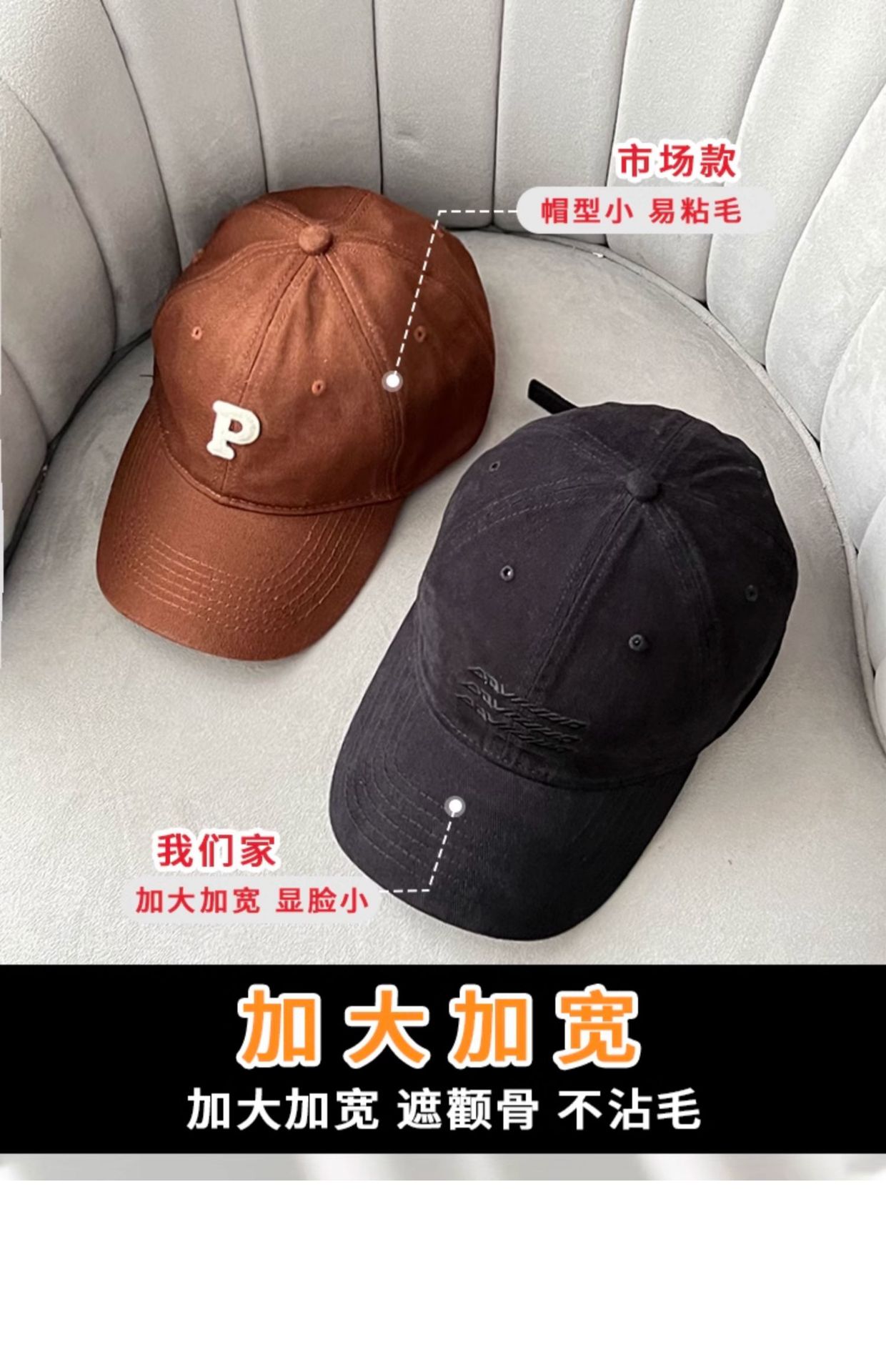 棒球帽女2024新款复古防晒鸭舌帽韩版百搭大头围帽子女潮