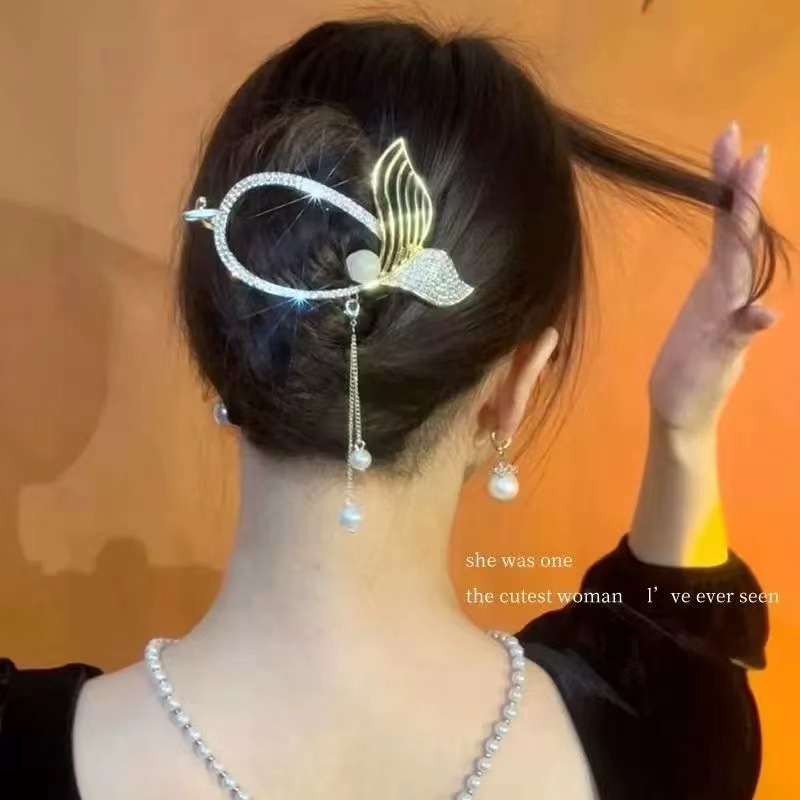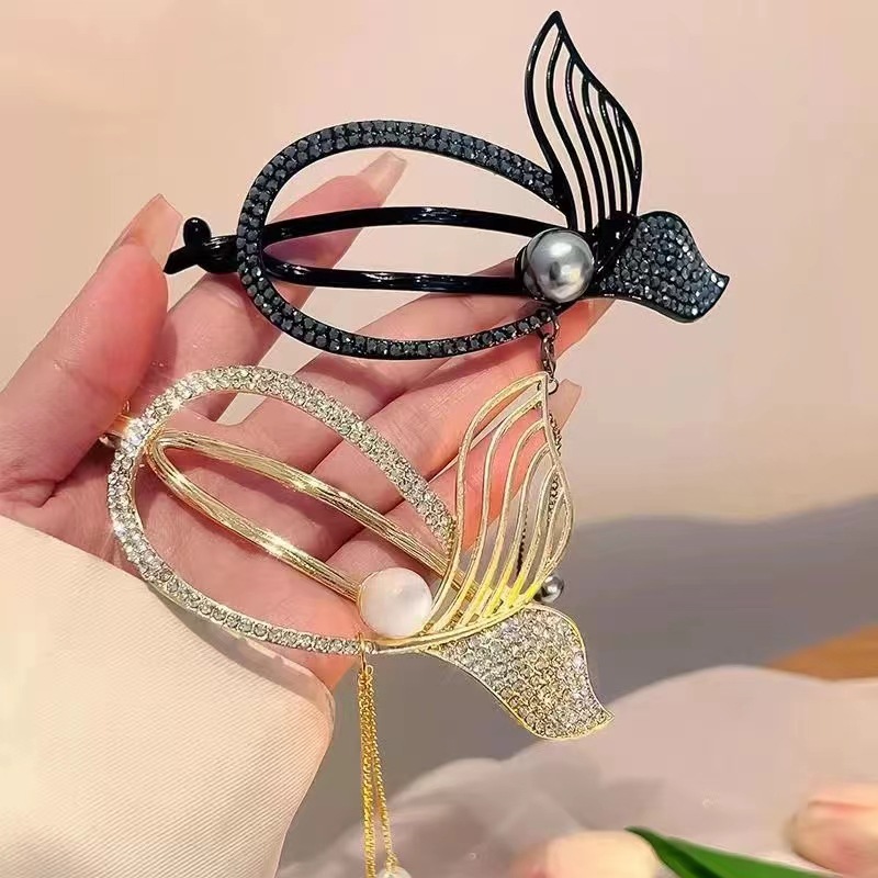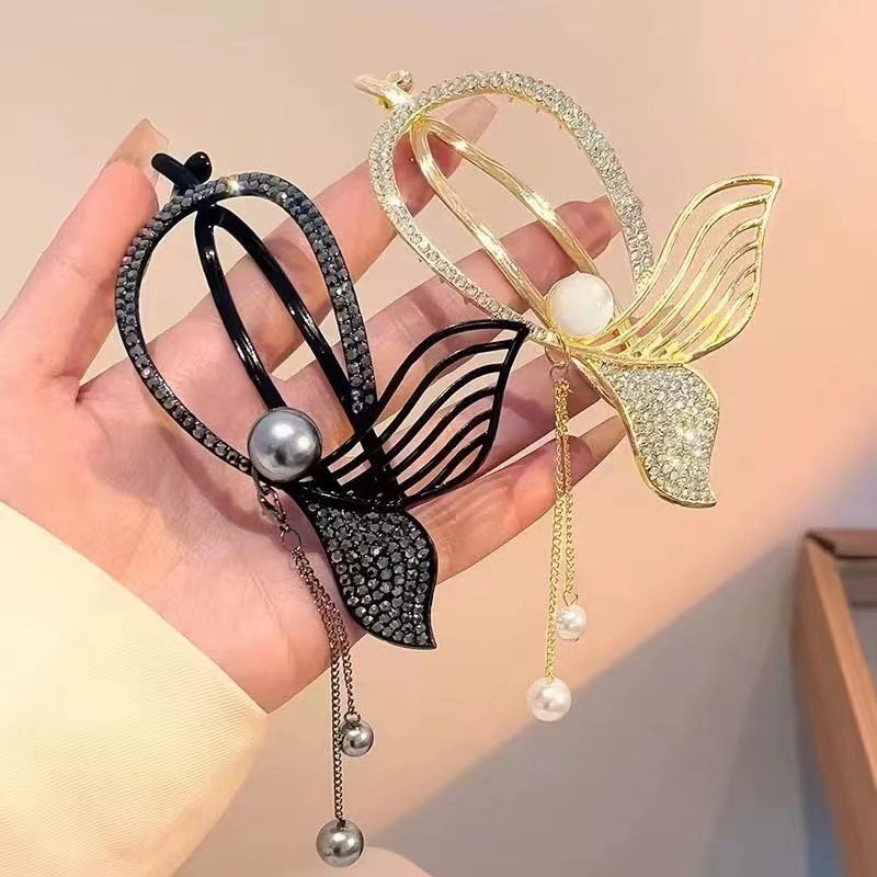 韩国新款高端流苏鱼尾扭扭夹发卡后脑勺抓夹高级感盘发发夹一字夹