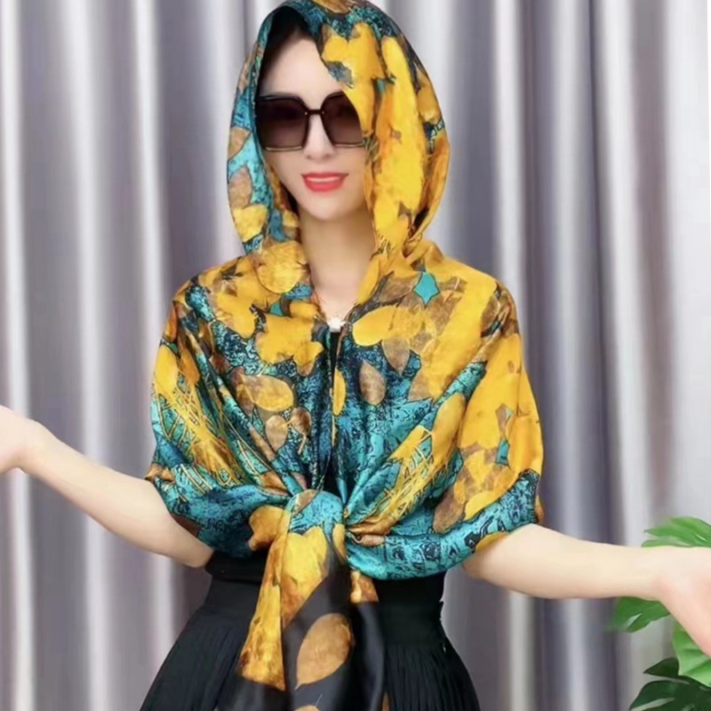 夏季防晒磁扣丝巾帽遮阳帽子女款2023新款多功能防风时尚包头巾