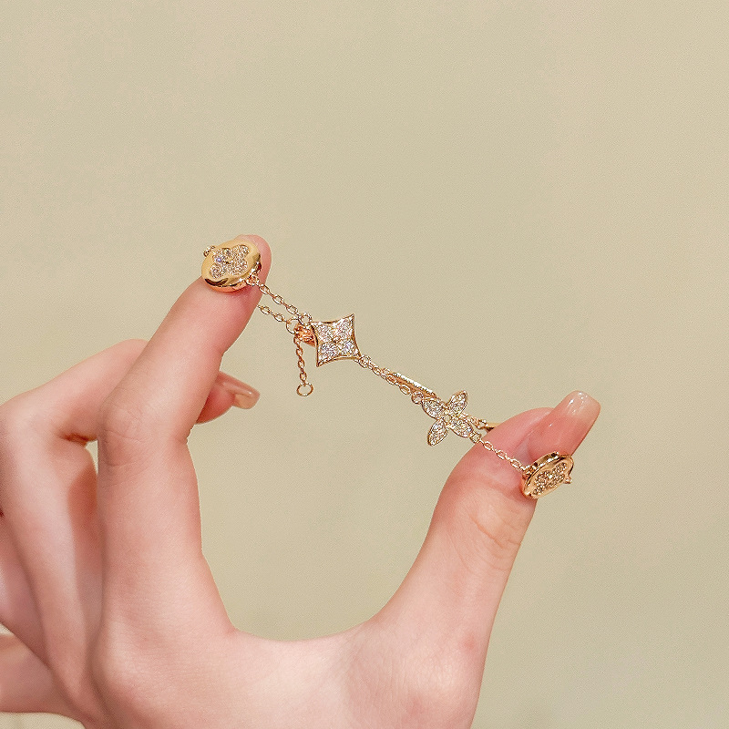 跨境爆款合金四叶草手链锆石奢华手饰配饰叠戴手链轻奢气质手链