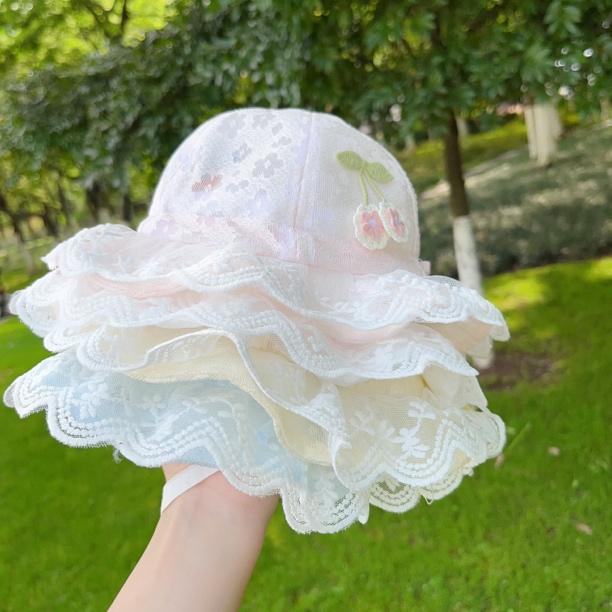 婴幼儿帽子可调节4-18月蕾丝公主夏季薄款小女孩遮阳渔夫盆帽花朵