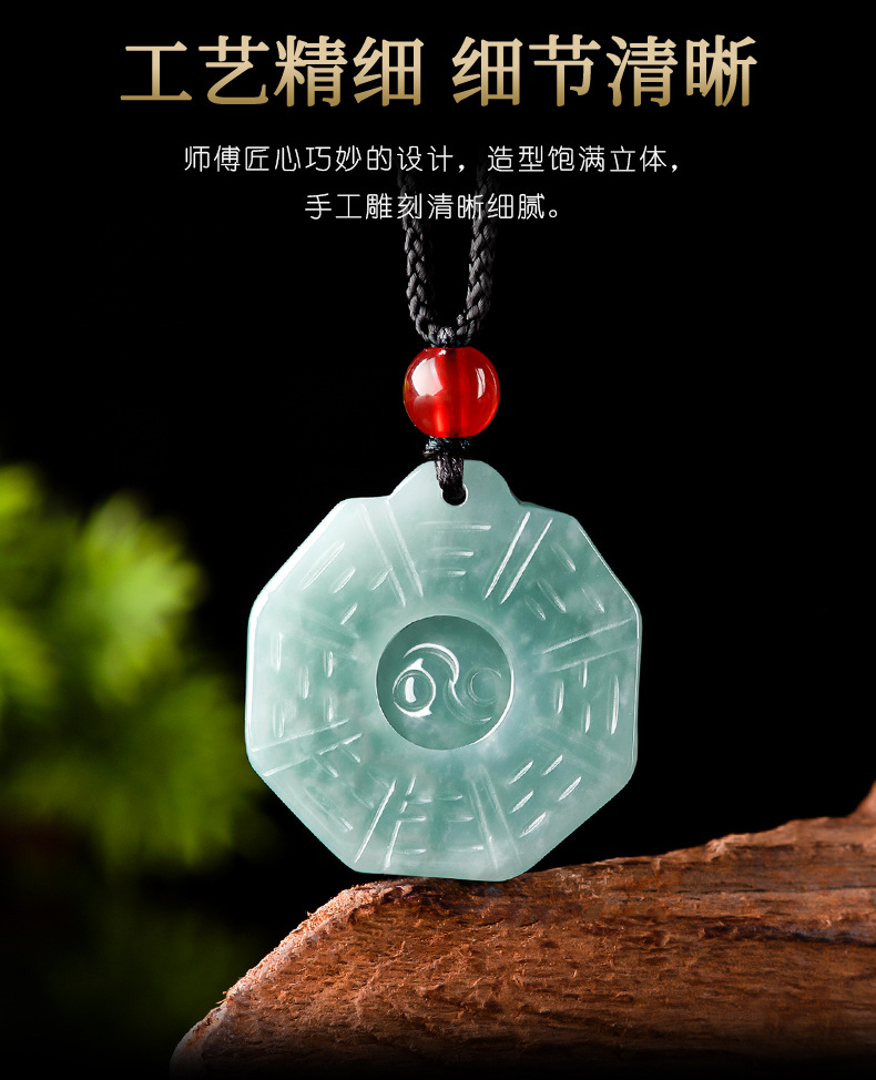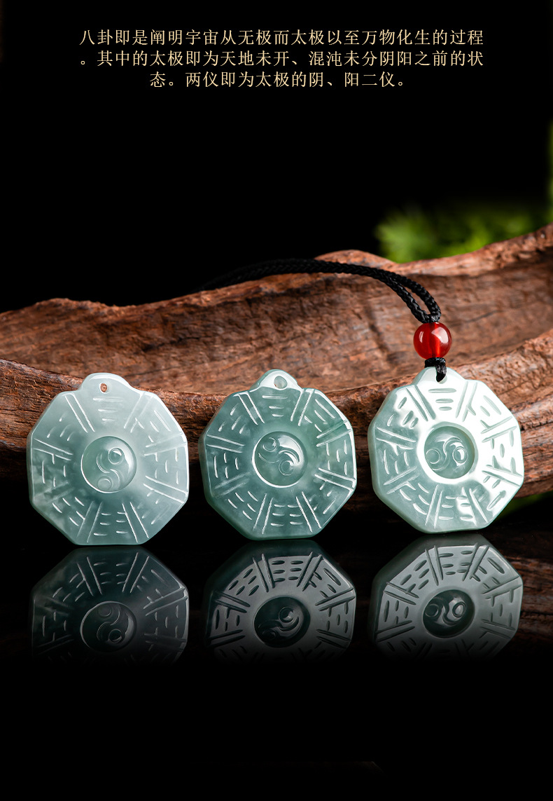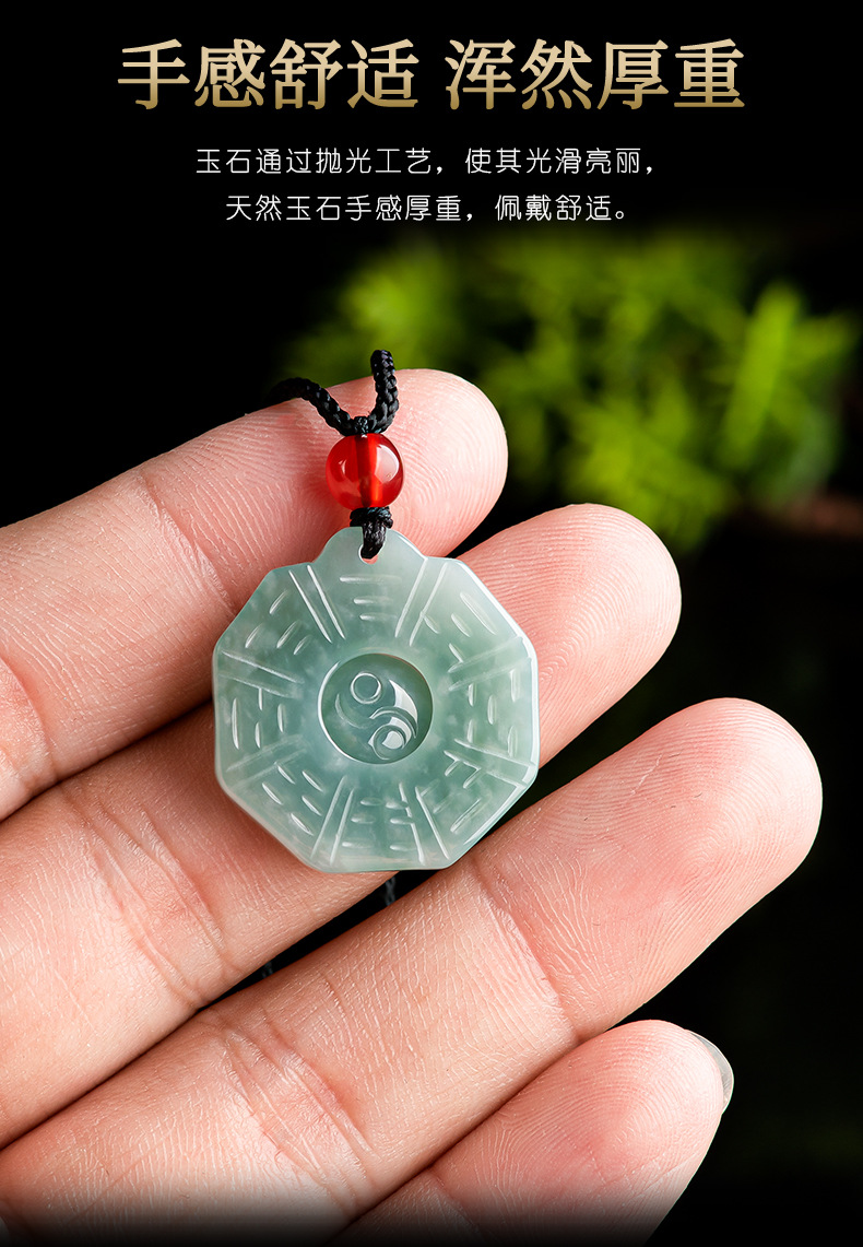 天然A货翡翠蓝水太极八卦玉石吊坠冰种玉坠男女款挂件四会玉器