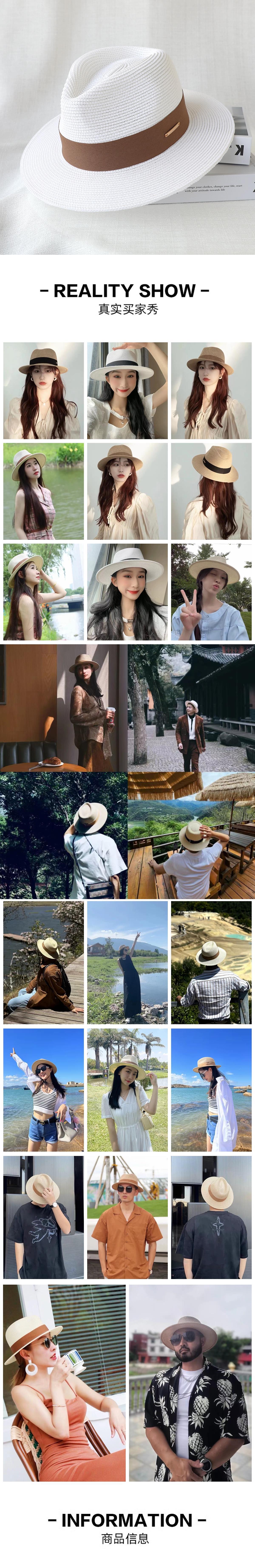 巴拿马草帽男女通用礼帽爵士帽度假遮阳帽防紫外线百搭潮流可调节