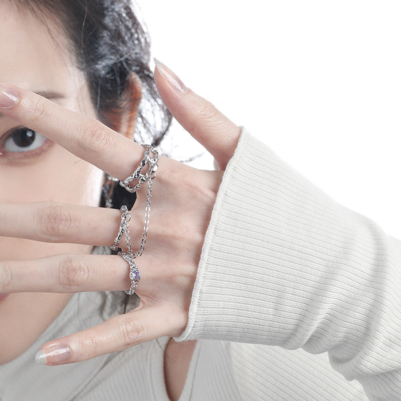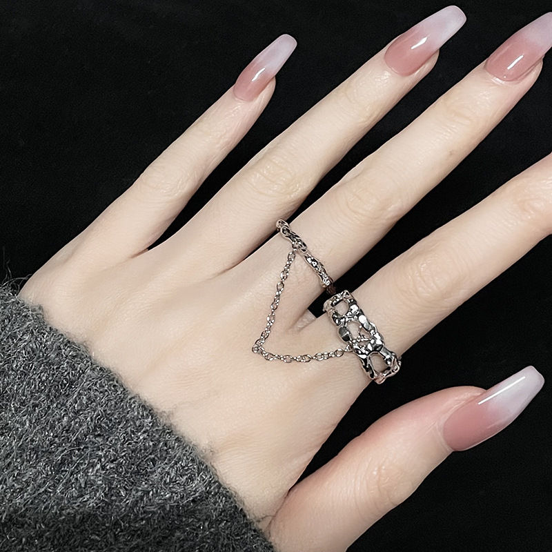 不规则肌理指环双指链条戒指简约时尚高级感百搭个性开口食指戒女