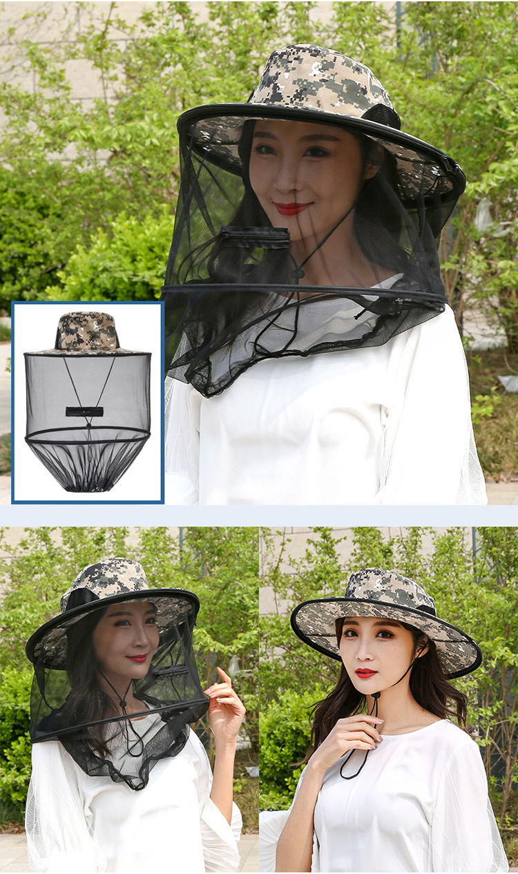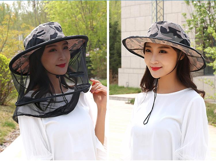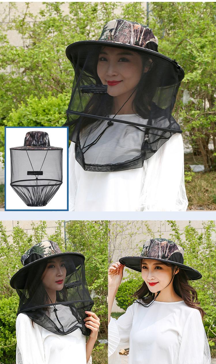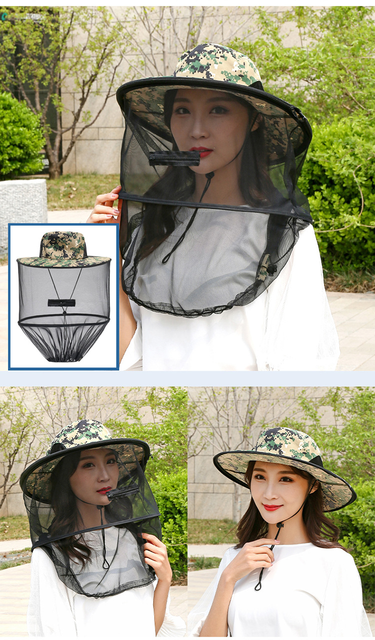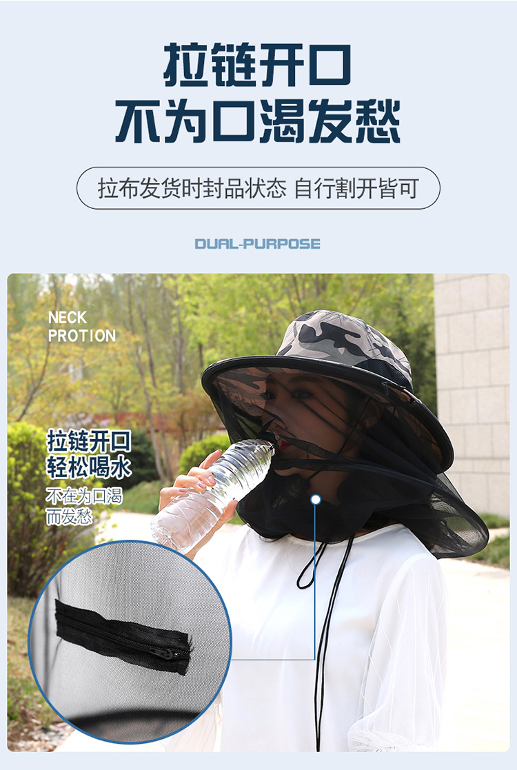 厂家批发夏季防蚊帽多功能可拆卸防虫帽户外钓鱼防晒遮阳帽渔夫帽