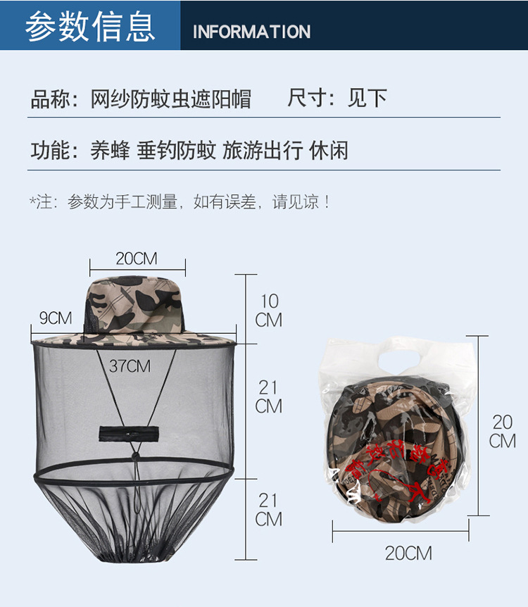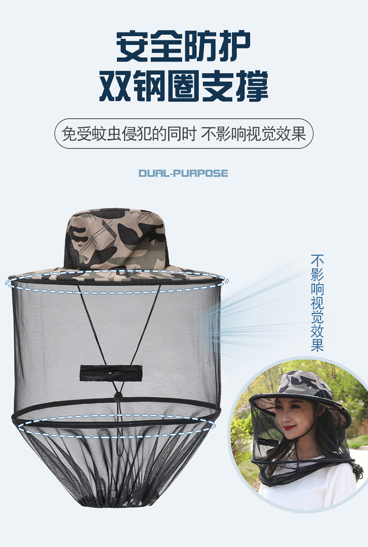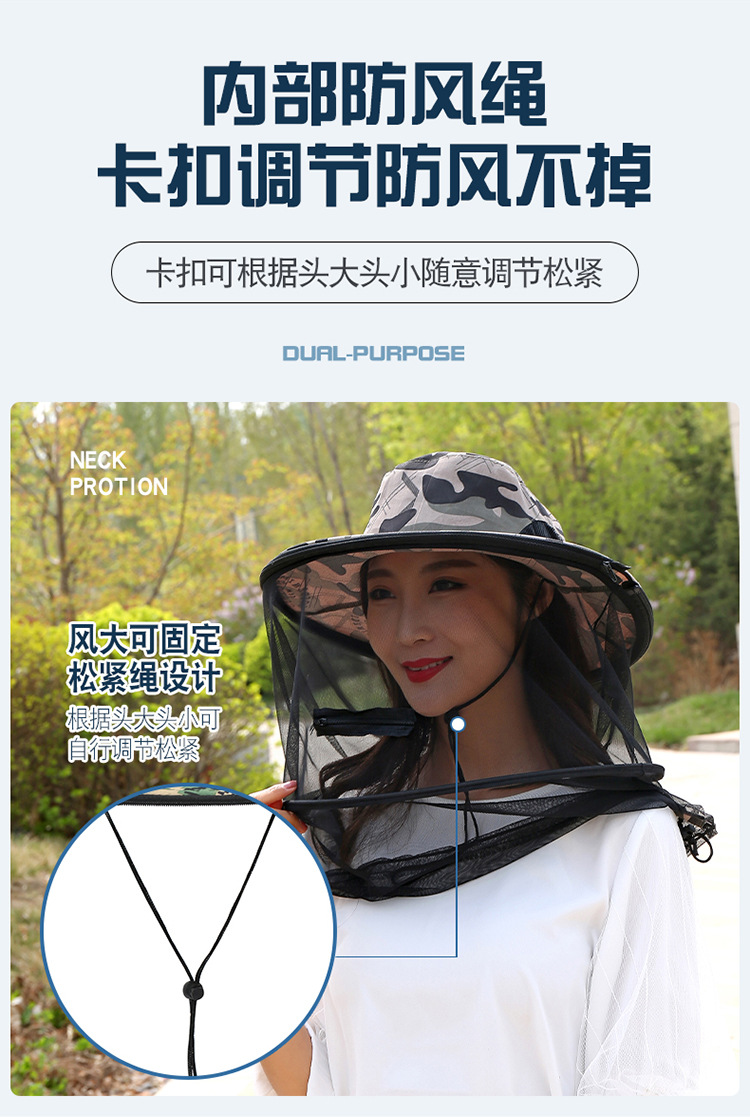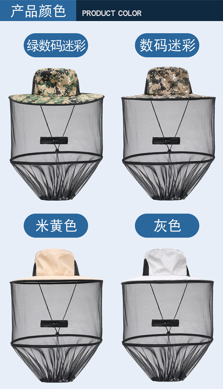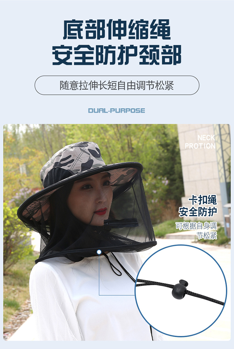 厂家批发夏季防蚊帽多功能可拆卸防虫帽户外钓鱼防晒遮阳帽渔夫帽