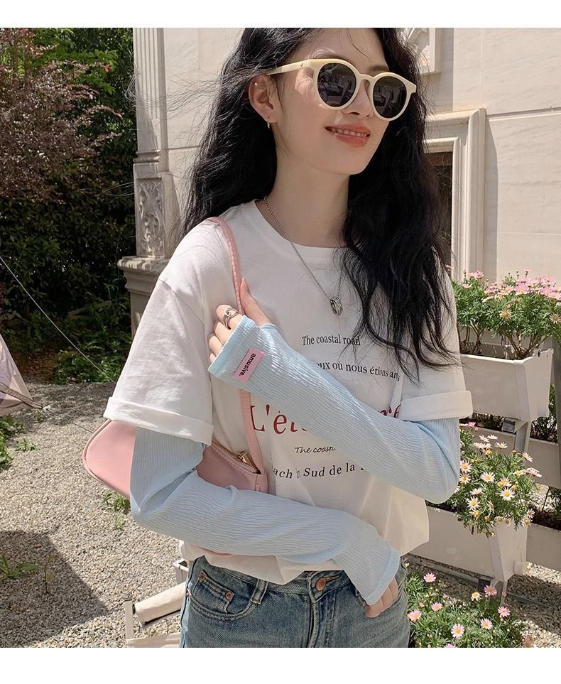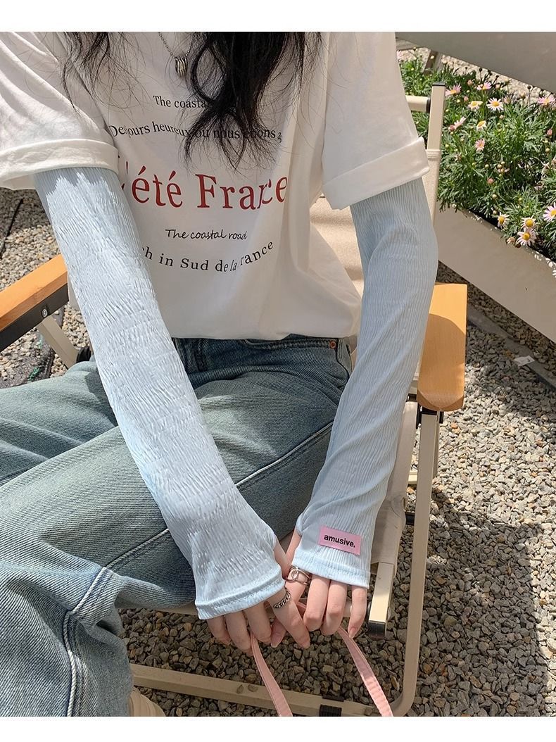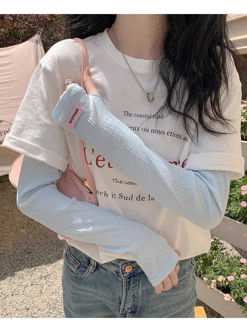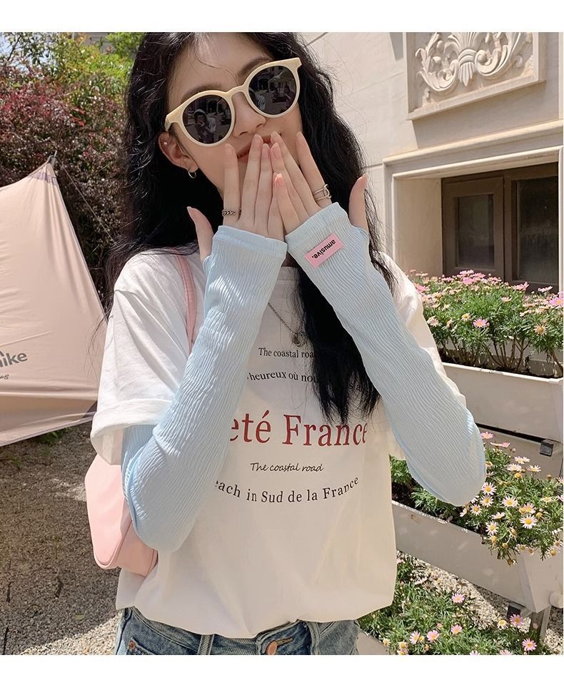 赵露思同款冰丝冰袖夏季防晒袖套女防紫外线薄款护臂开车冰丝手袖