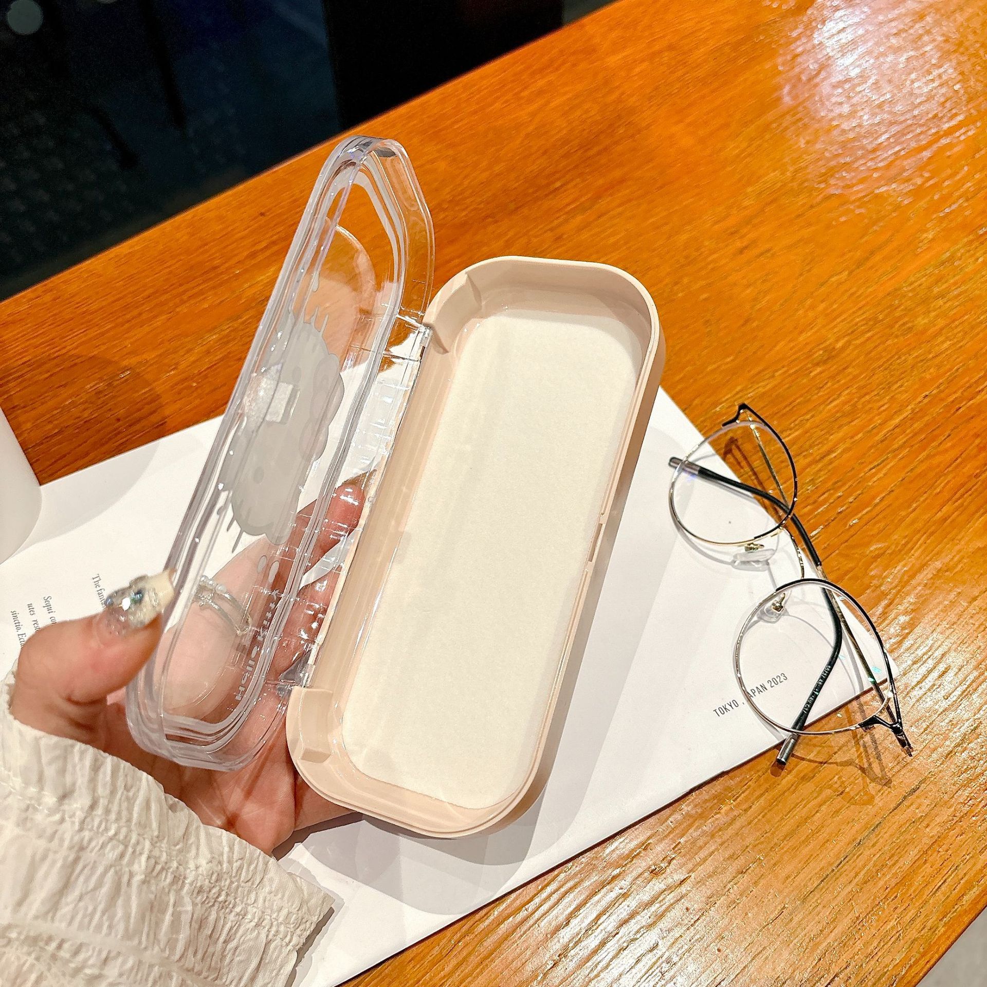 网红爆款可爱卡通ins风透明波浪眼镜盒便携高颜值收纳盒女学生可