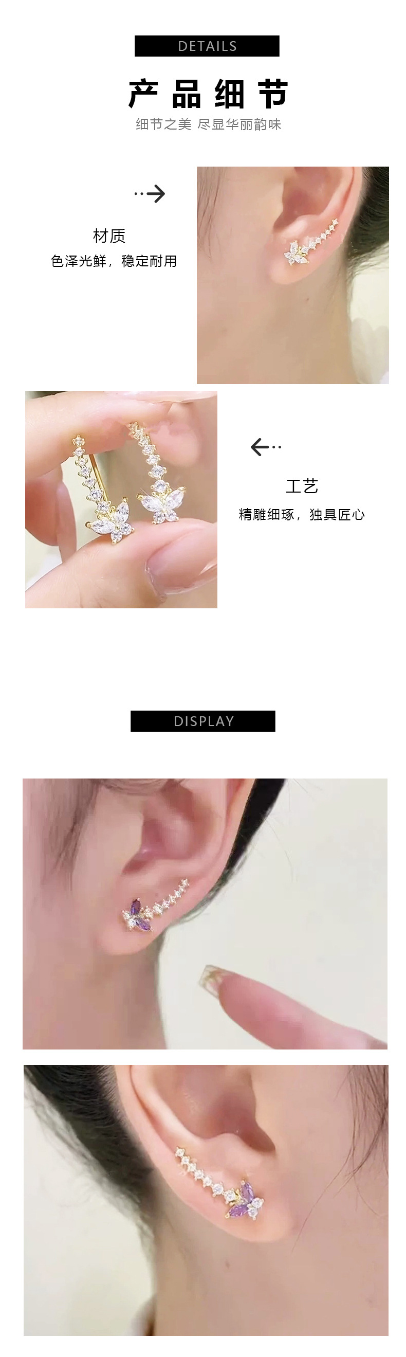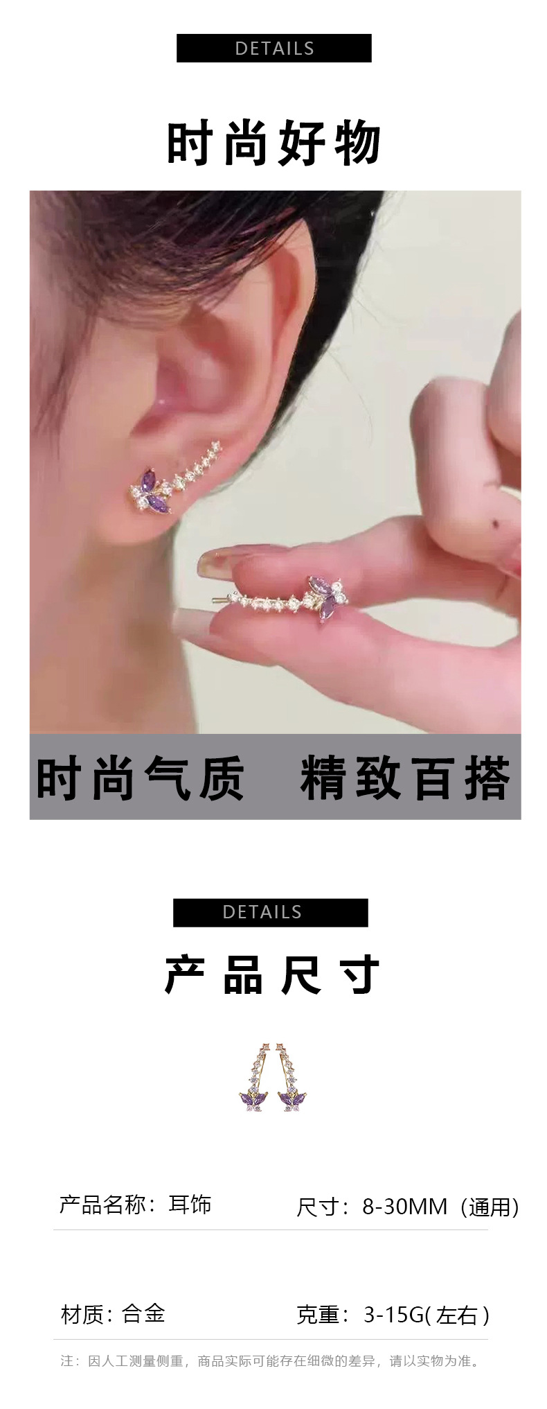紫色蝴蝶耳钉女精致小众时尚甜美高级感耳环气质简约百搭耳饰饰品