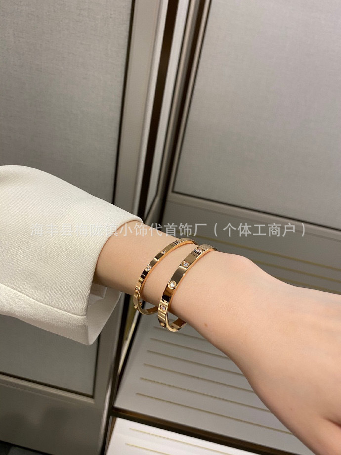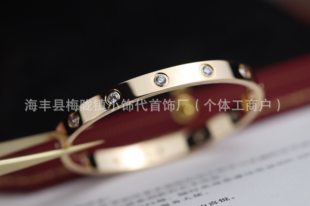 V金高版卡家宽窄版手镯满天星厚镀18k金玫瑰金时尚情侣手饰批发