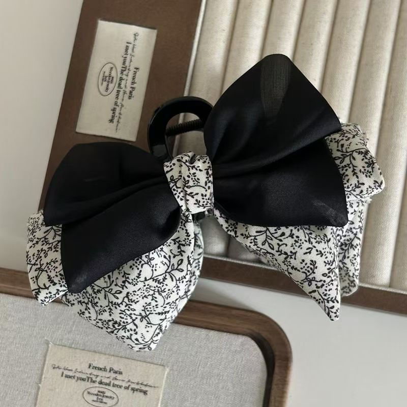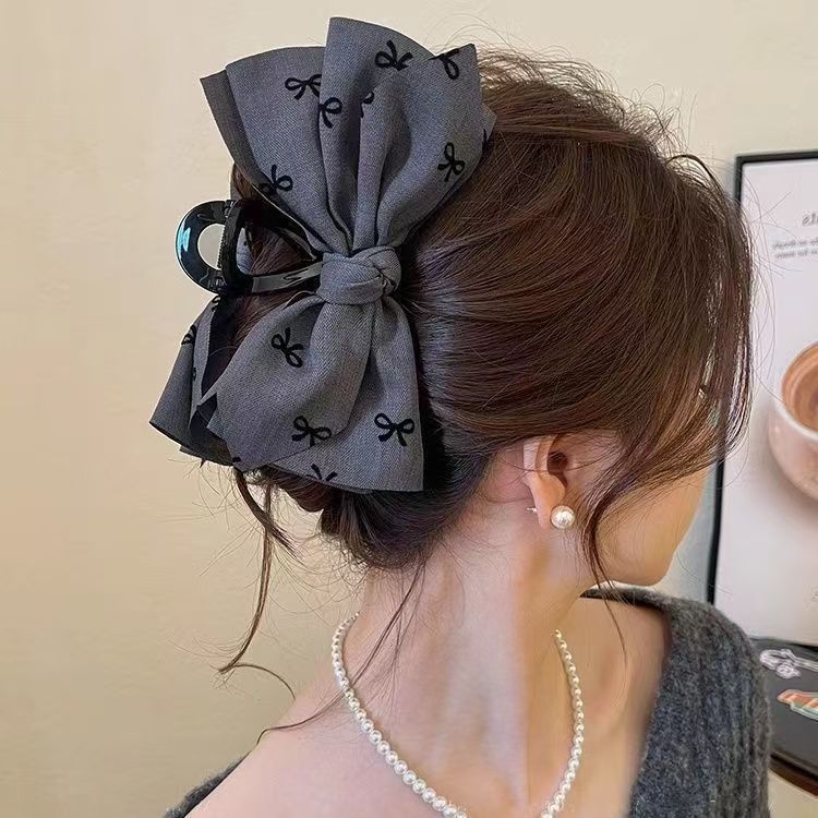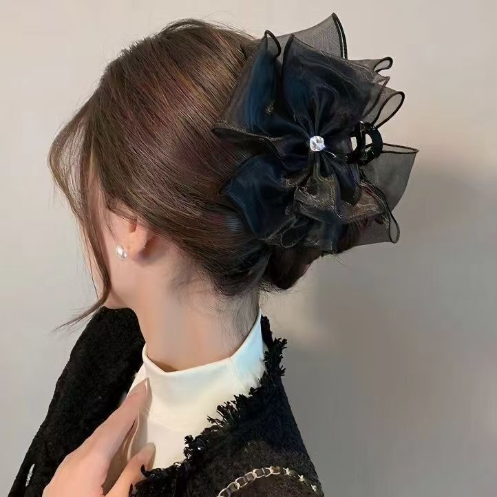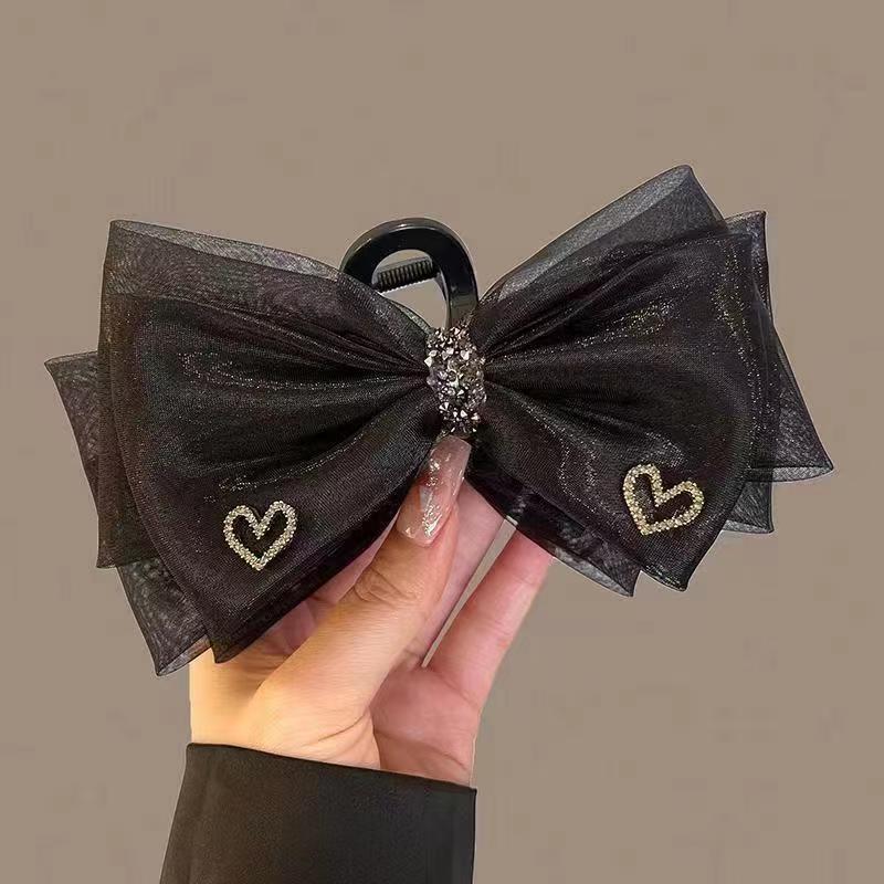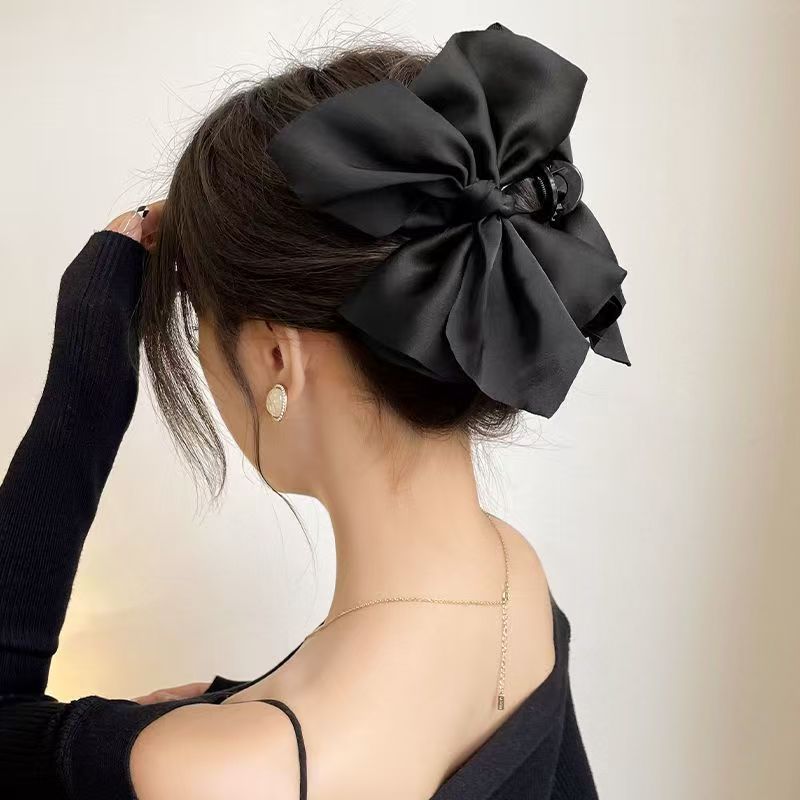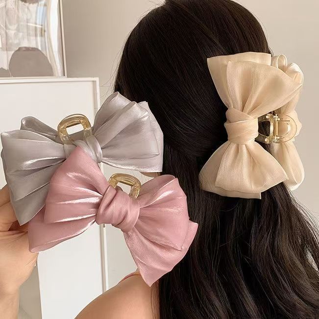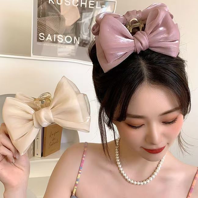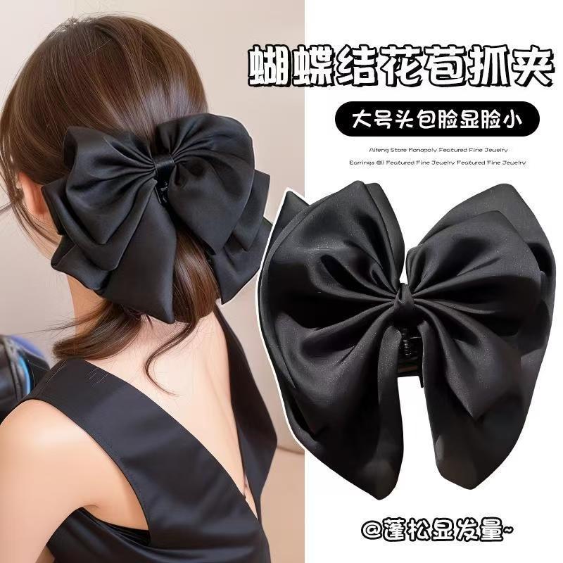 高级感珍珠蝴蝶结抓夹大号发夹女后脑勺盘发头饰气质优雅鲨鱼夹子