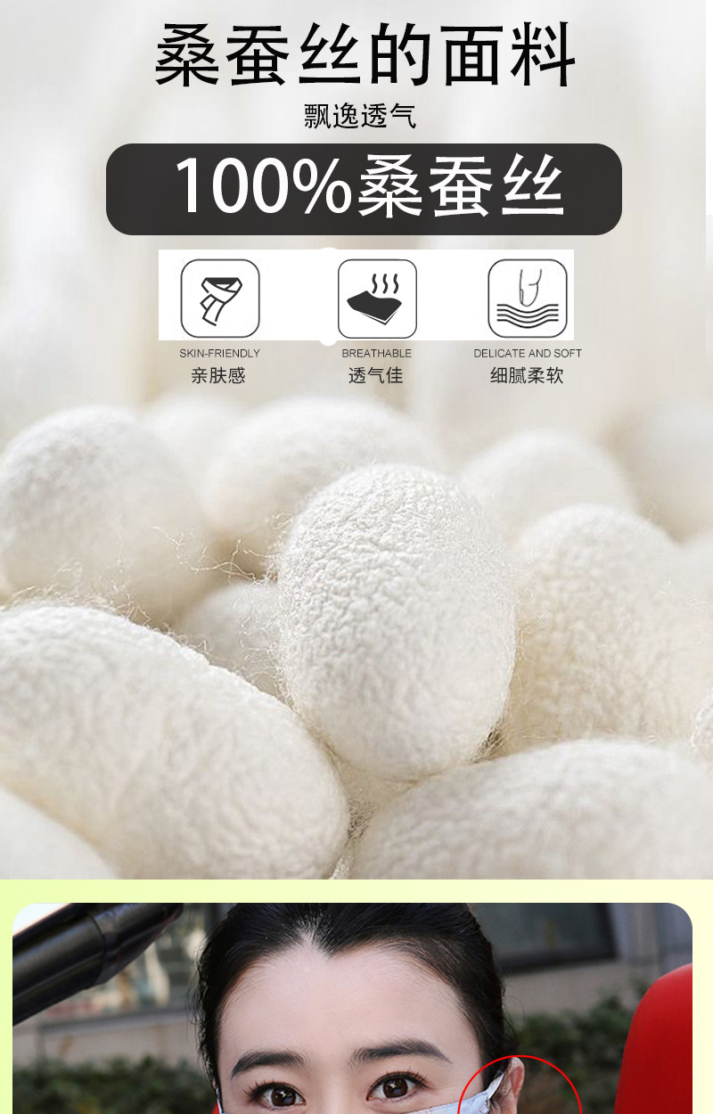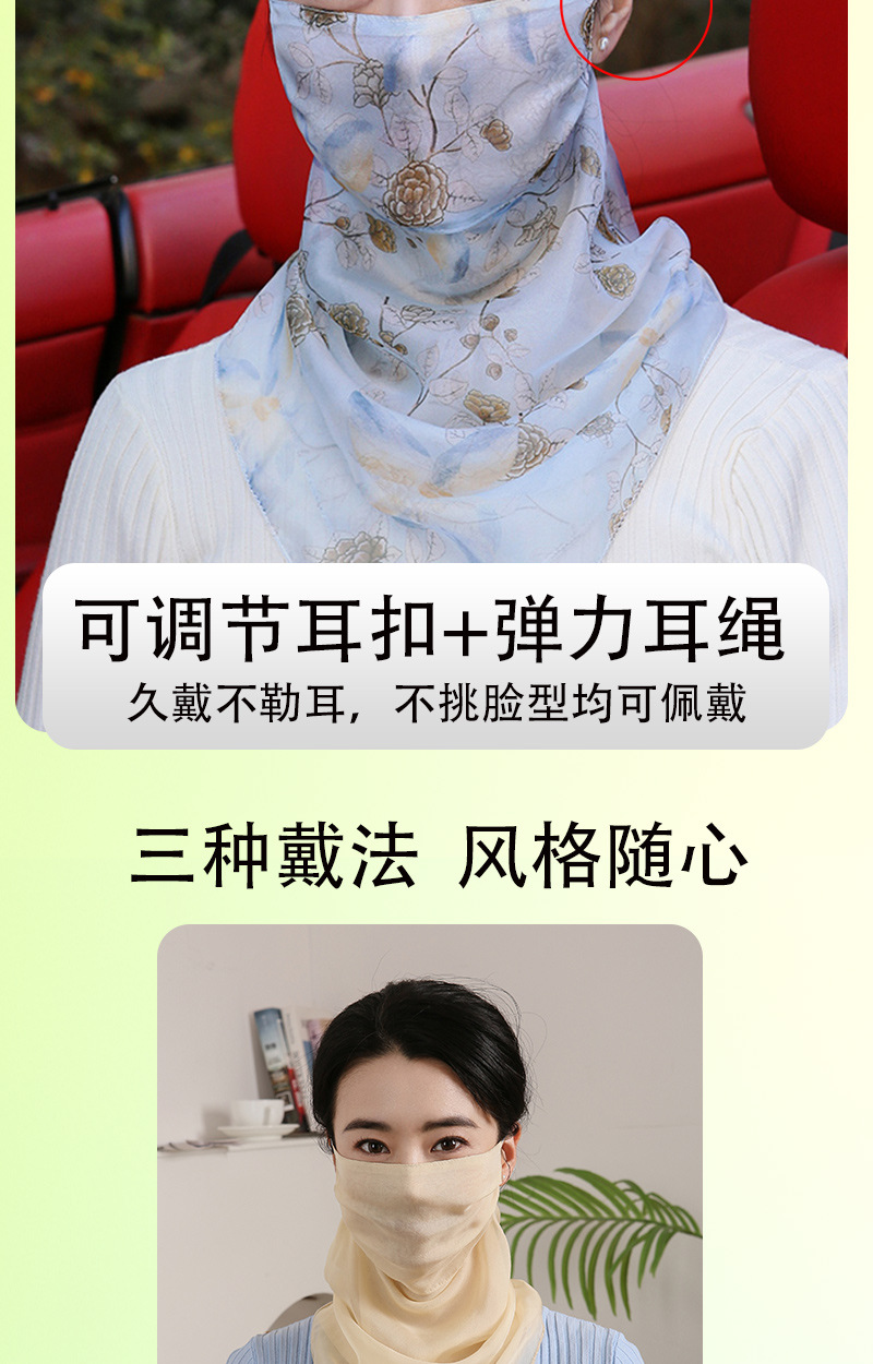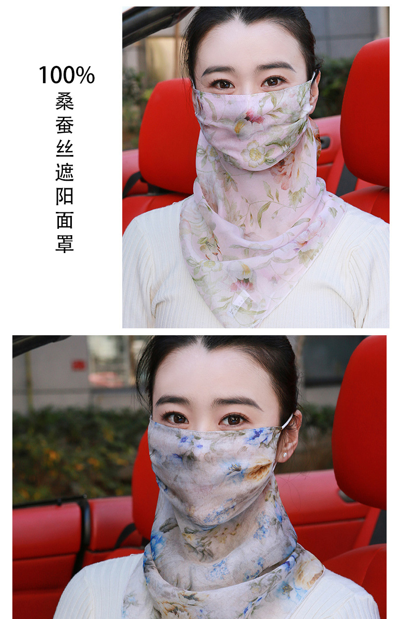 100%桑蚕丝真丝面罩全脸薄款口罩透气护颈夏天面纱女