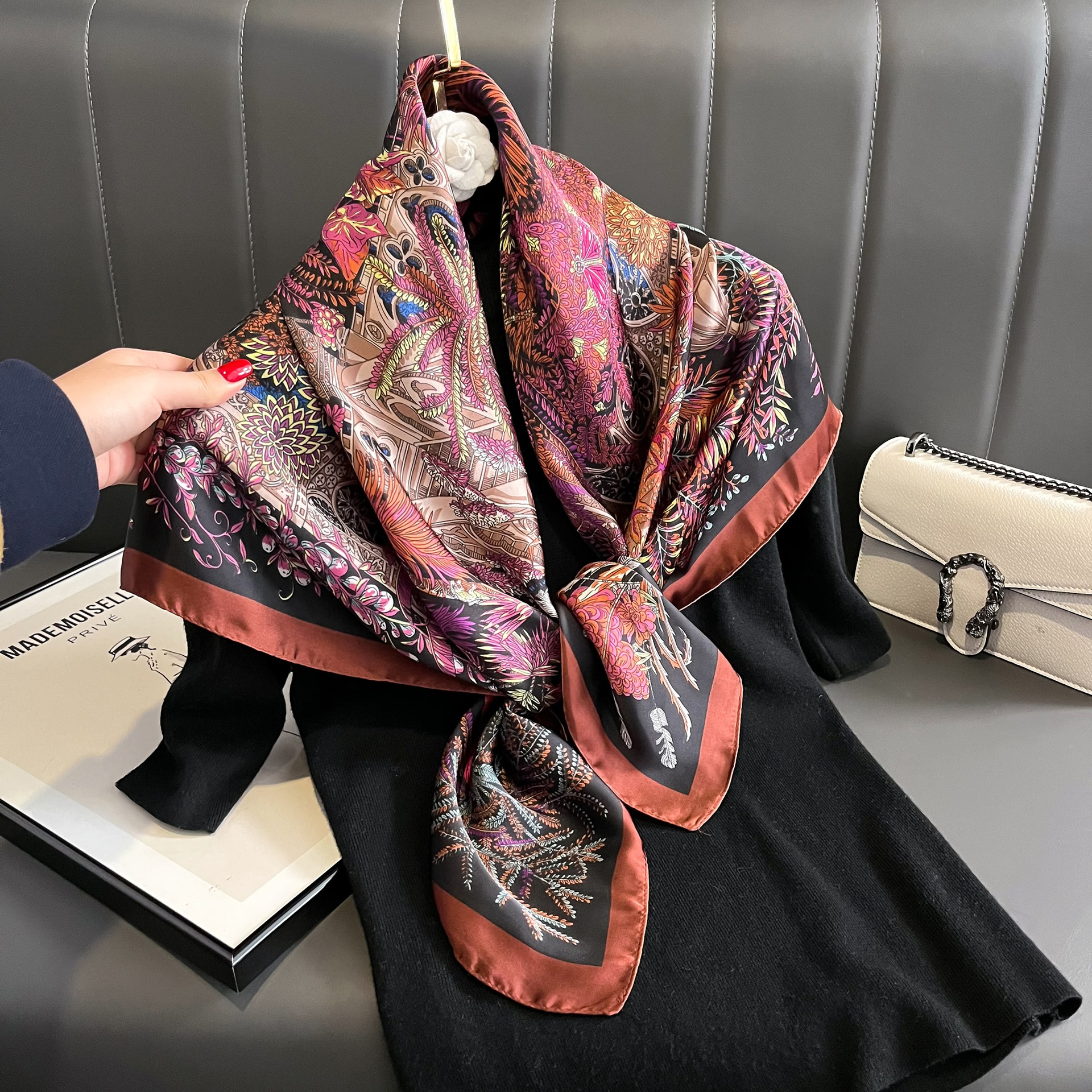 复古丝巾24年外贸新款scarf外搭披肩90*90cm丽锦缎大方巾马来头巾