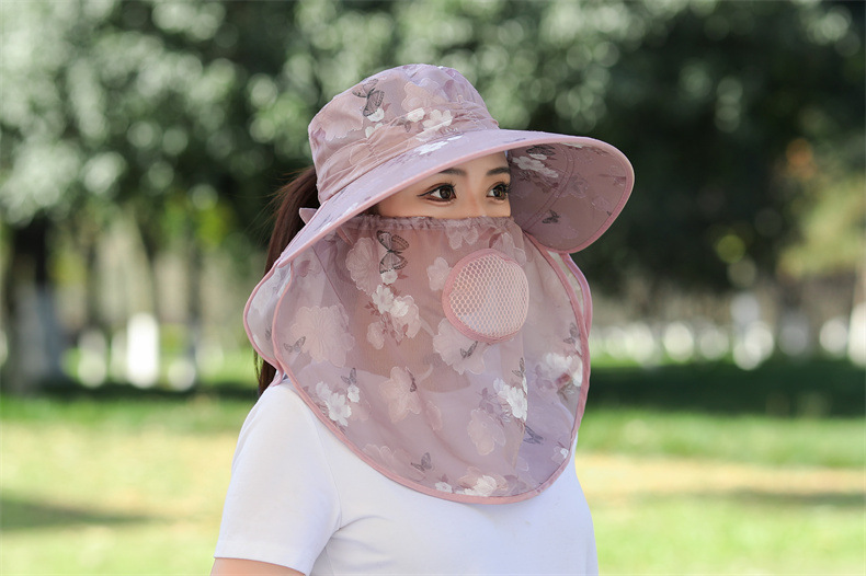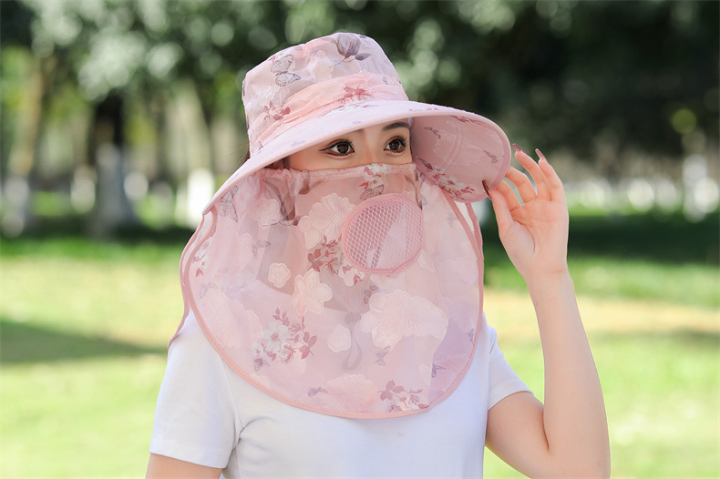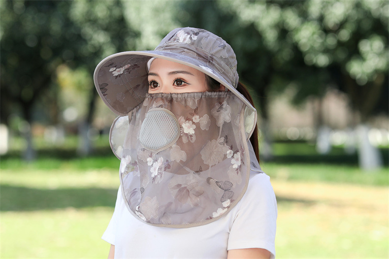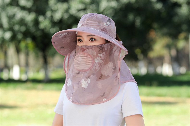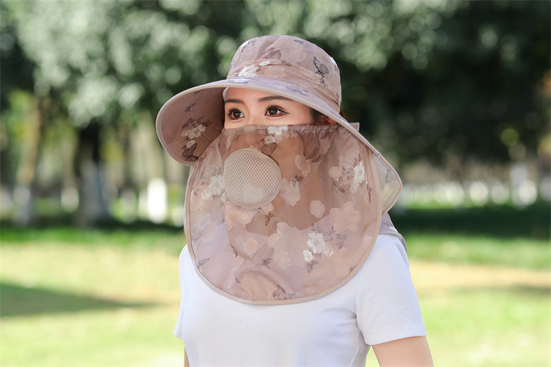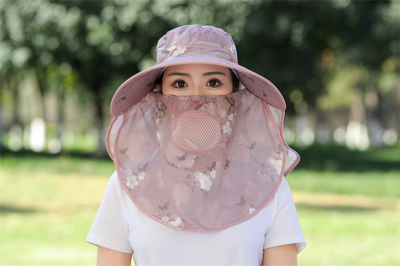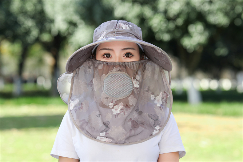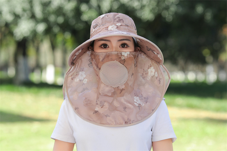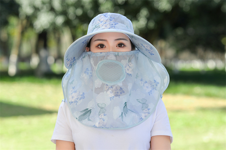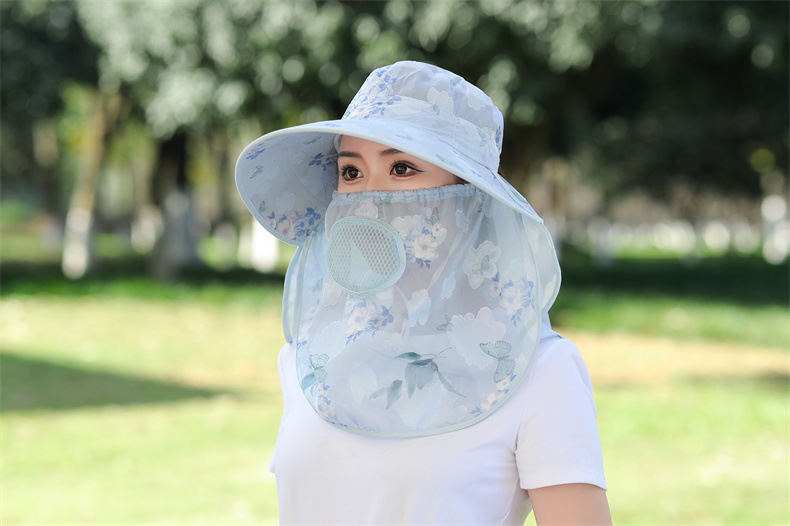 薄款大沿防晒遮阳帽子女士户外农活采茶帽披肩遮脸护颈防护雪纺帽