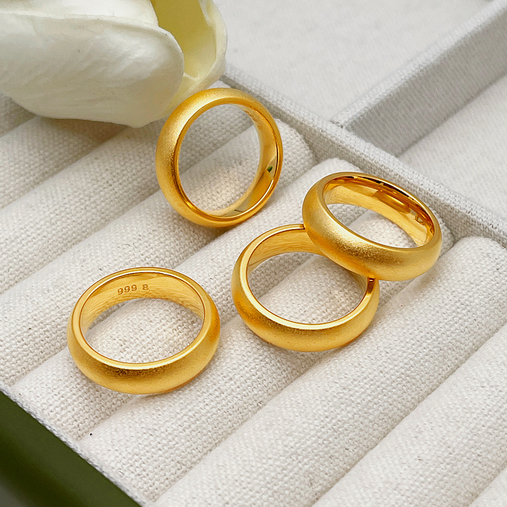 古法沙金戒指钢印999泥鳅背戒指男士女款婚庆高保色戒子光面简约