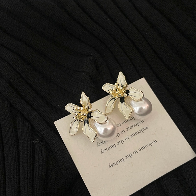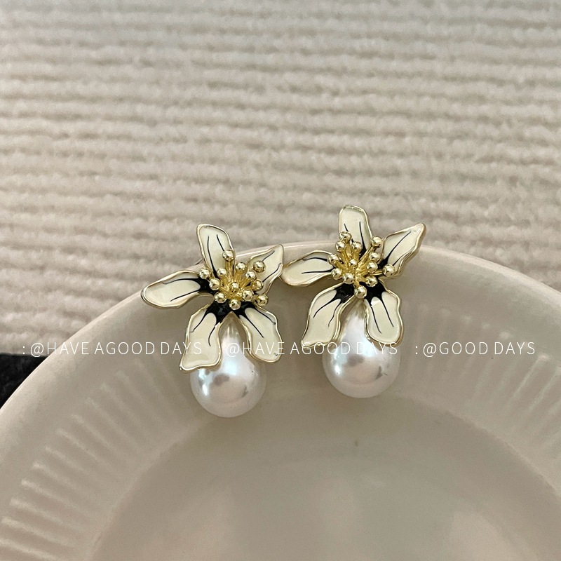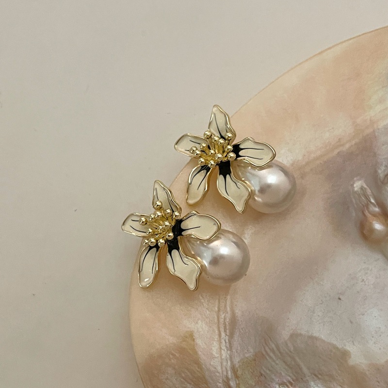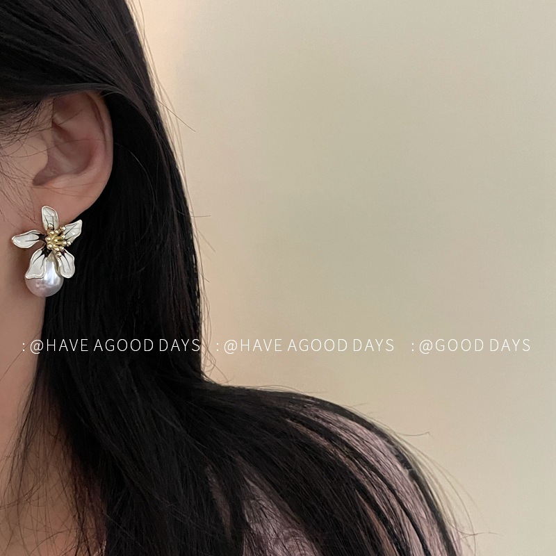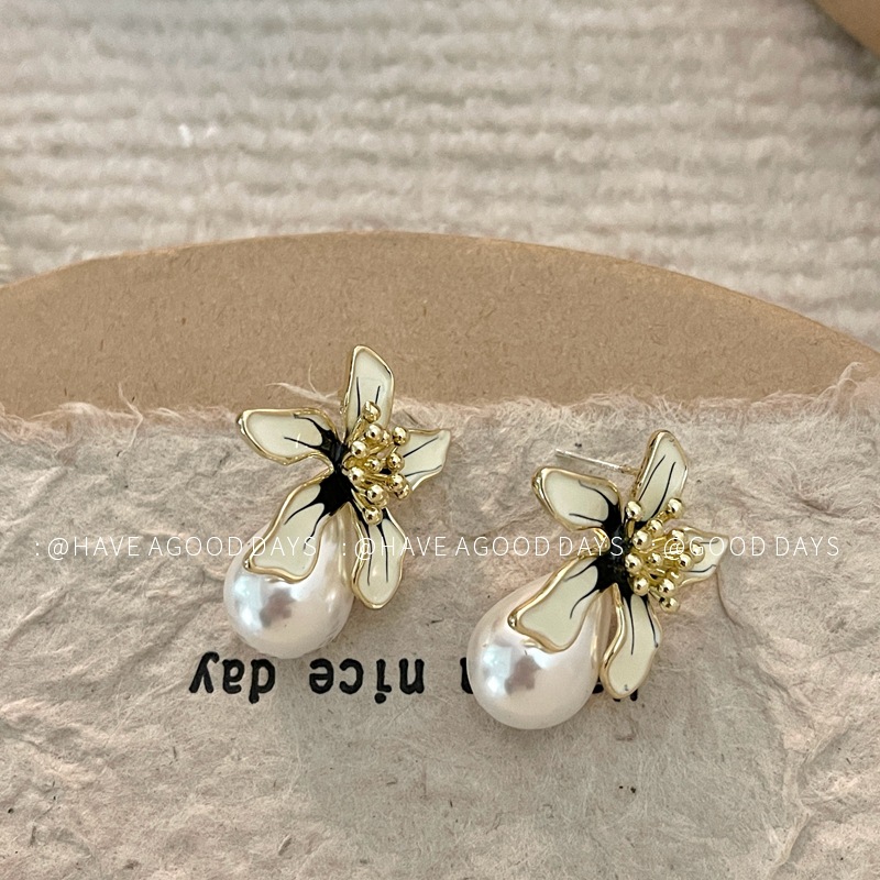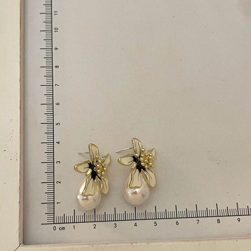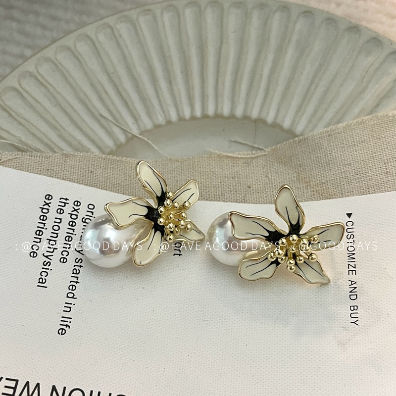 甜美复古兰花水滴珍珠耳环气质个性925银针小众设计感轻奢风高级~