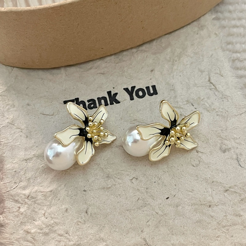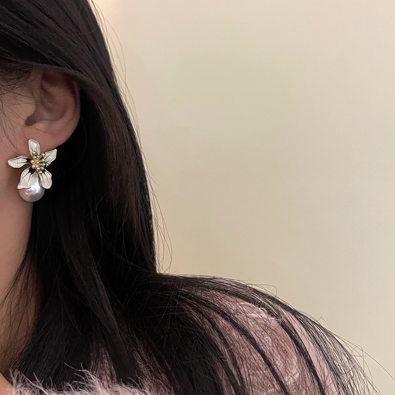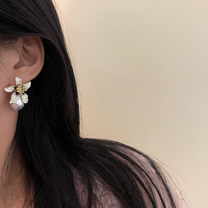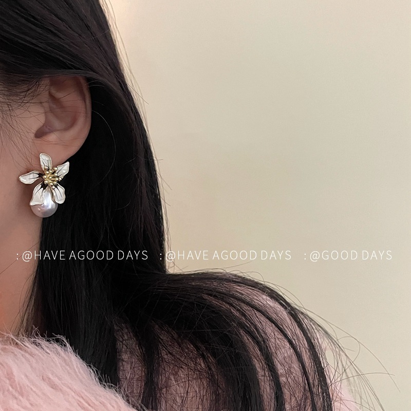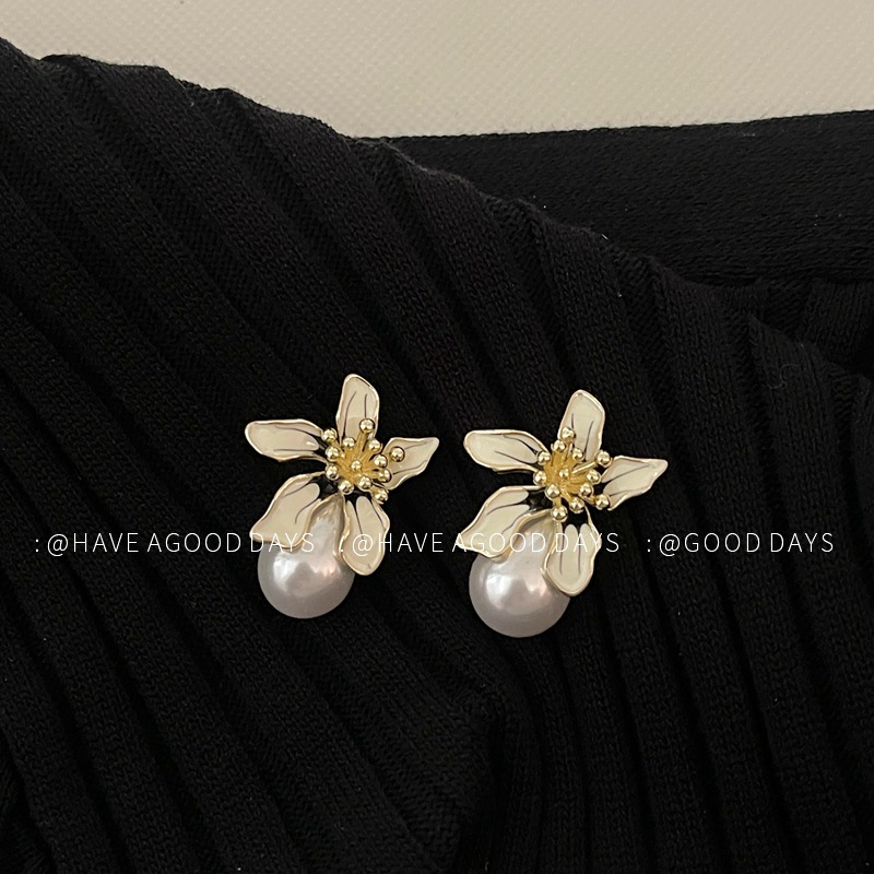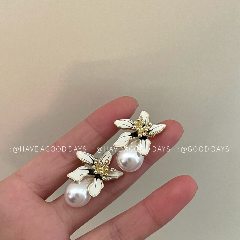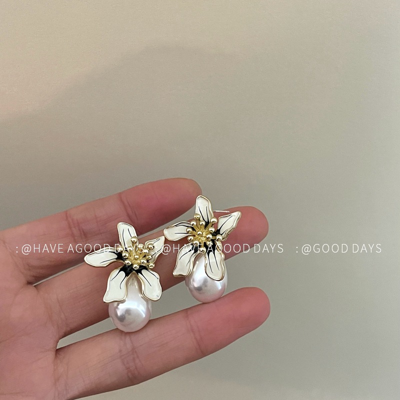 甜美复古兰花水滴珍珠耳环气质个性925银针小众设计感轻奢风高级~