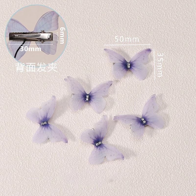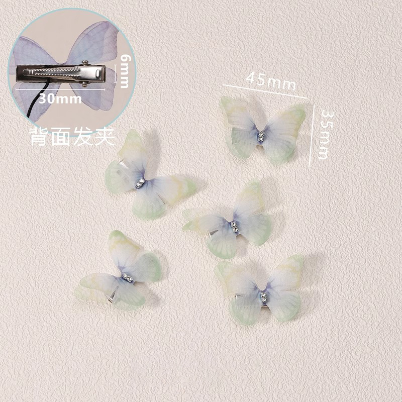 汉服配饰女渐变双层绢纱小蝴蝶发夹古风仙气古装头饰高级感边夹
