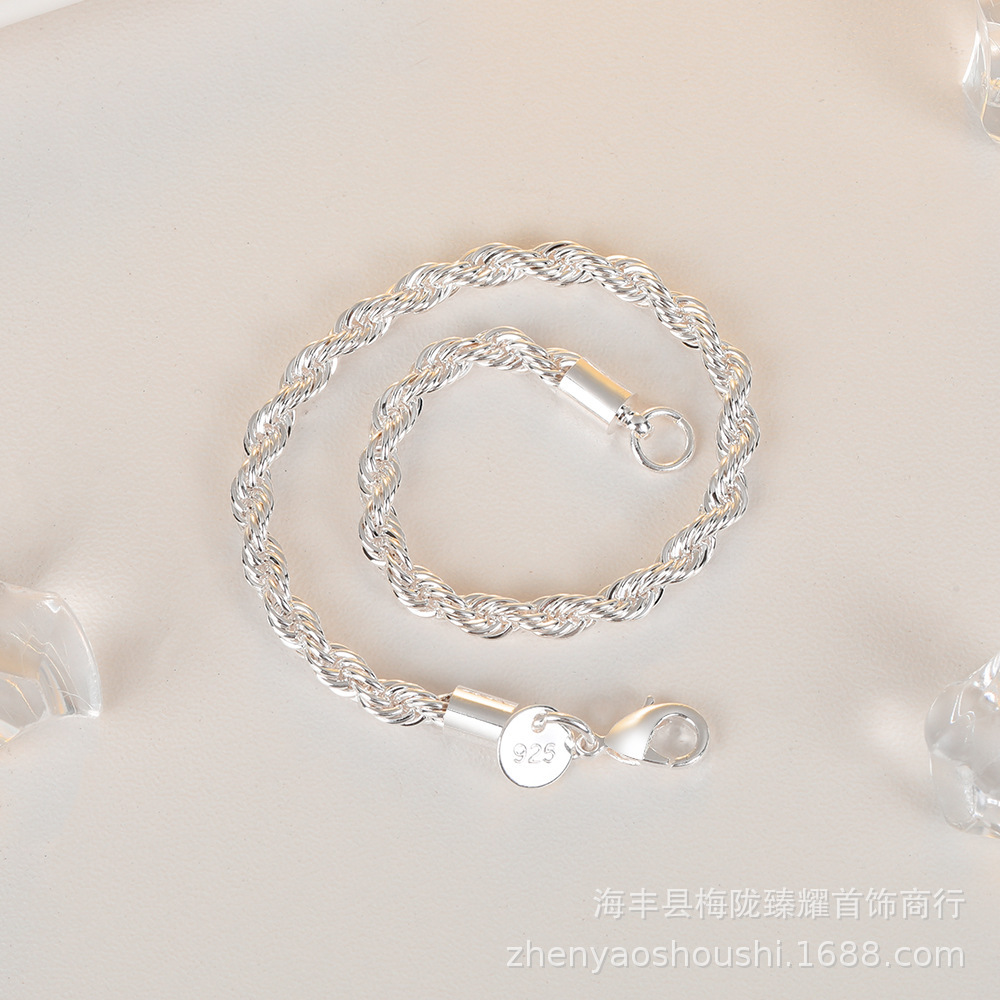 江铭闪扭绳手链女男4MM铜镀925银欧美时尚流行速卖通跨境外贸爆款