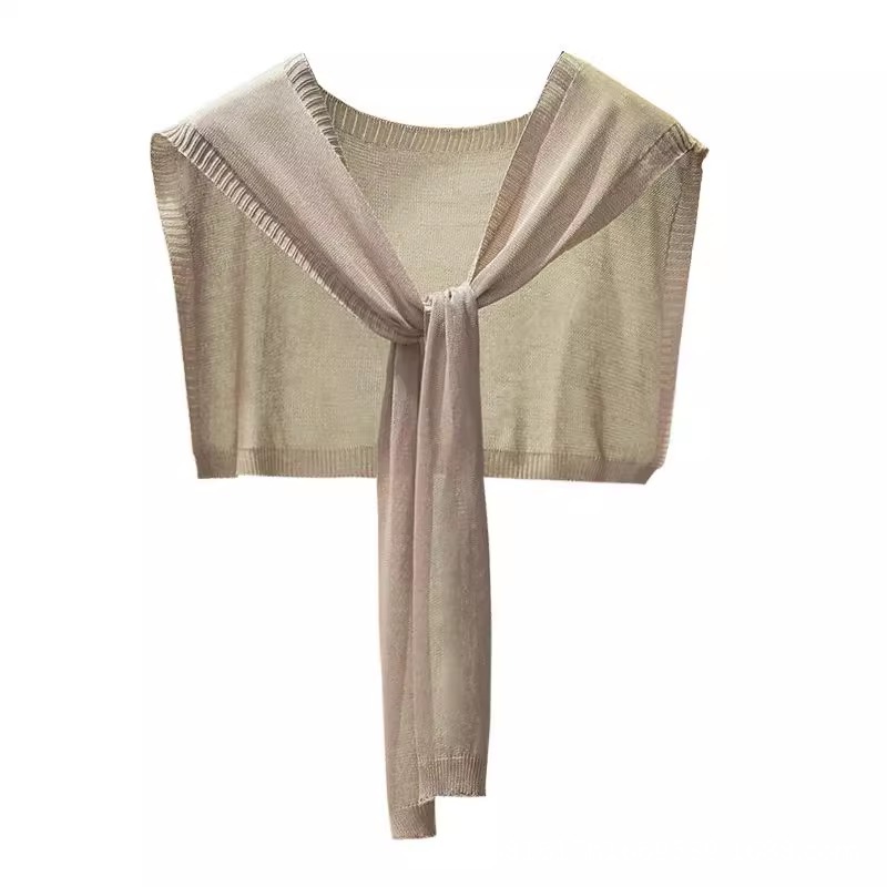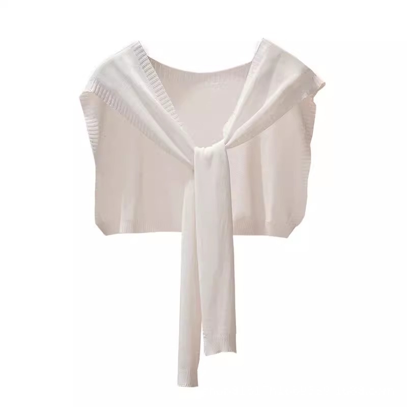 夏季防晒领子搭肩小披肩外搭冰丝针织百搭打结围巾女春秋时尚薄款