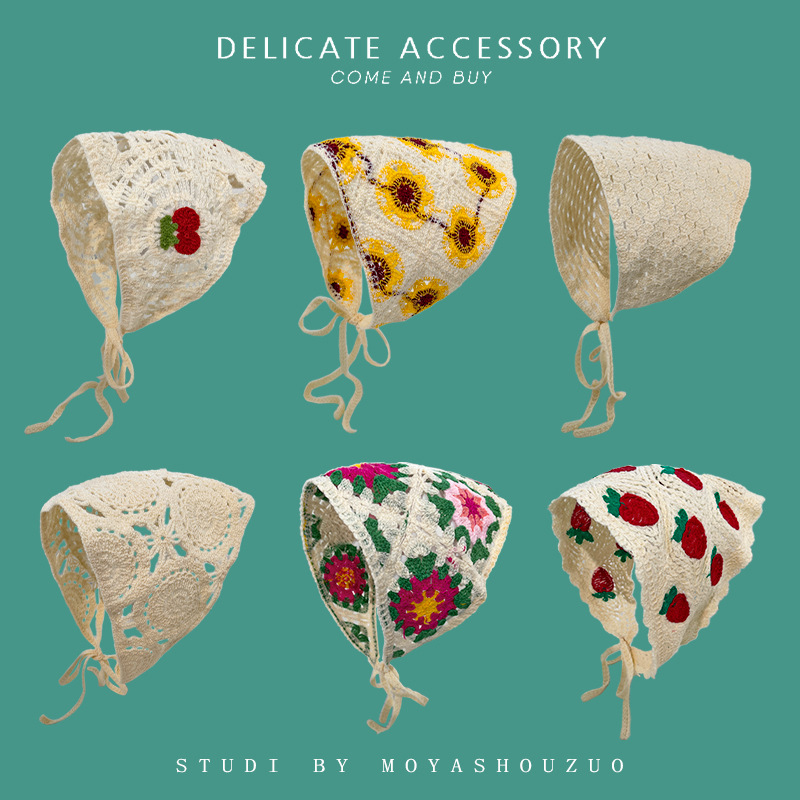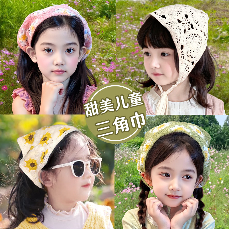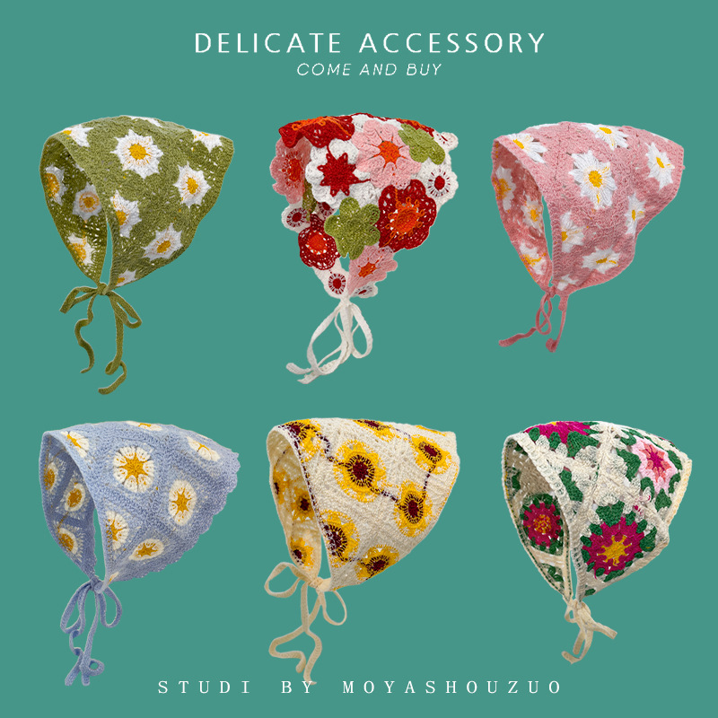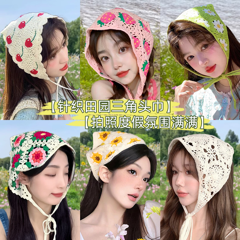 田园风头巾多巴胺针织钩花发箍辣妹法式三角巾头饰田园风头巾女