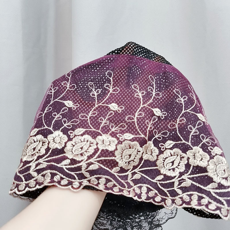 四季款刺绣花朵包头帽薄款蕾丝帽洋气遮白发帽时尚居家发带大花帽