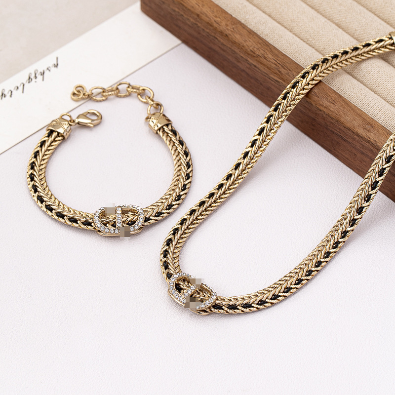 25年新款欧美小香风双C珍珠字母颈链镶钻皮绳轻奢简约时尚项链女